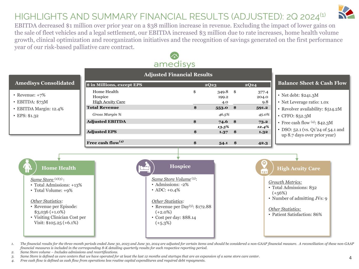 AMEDISYS REPORTS SECOND QUARTER 2024 FINANCIAL RESULTS