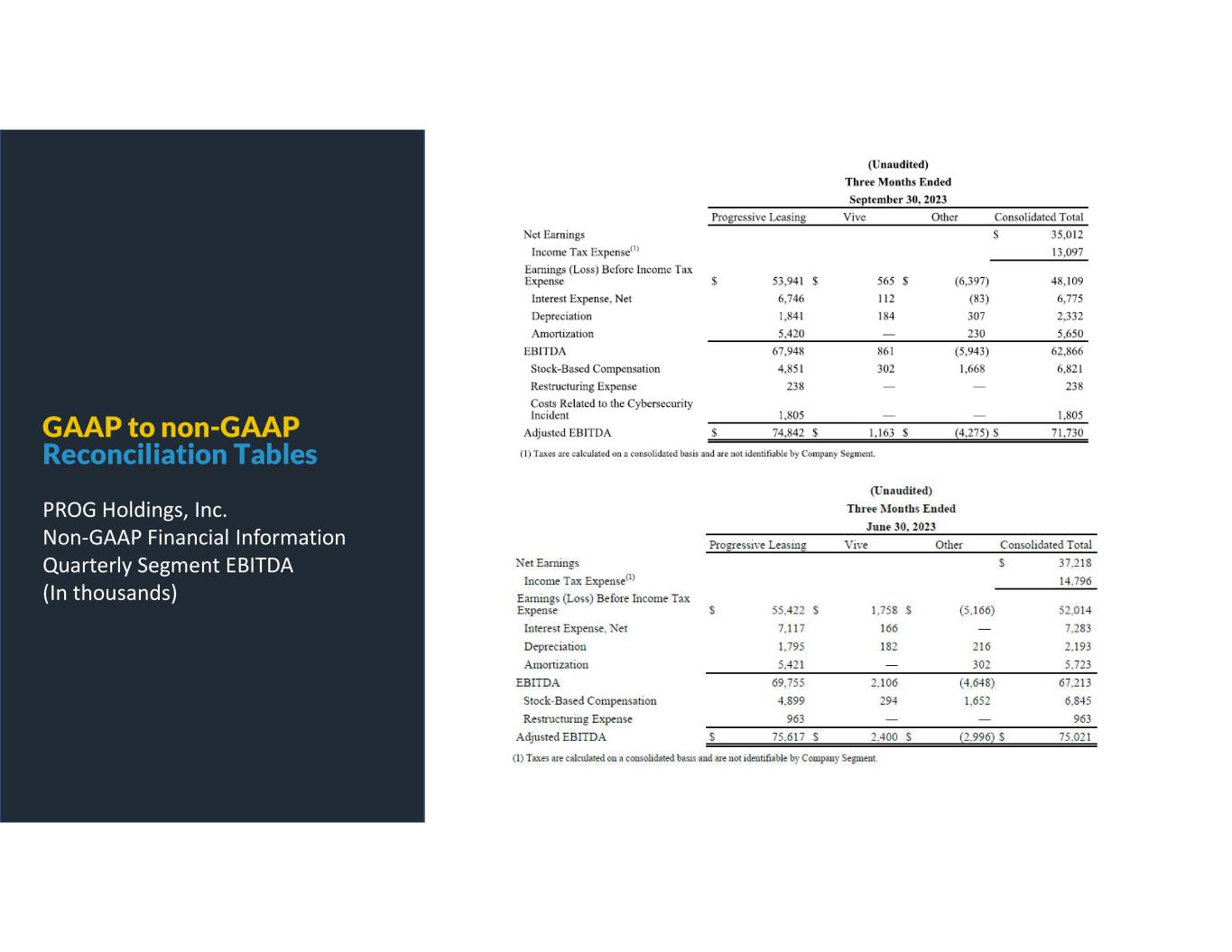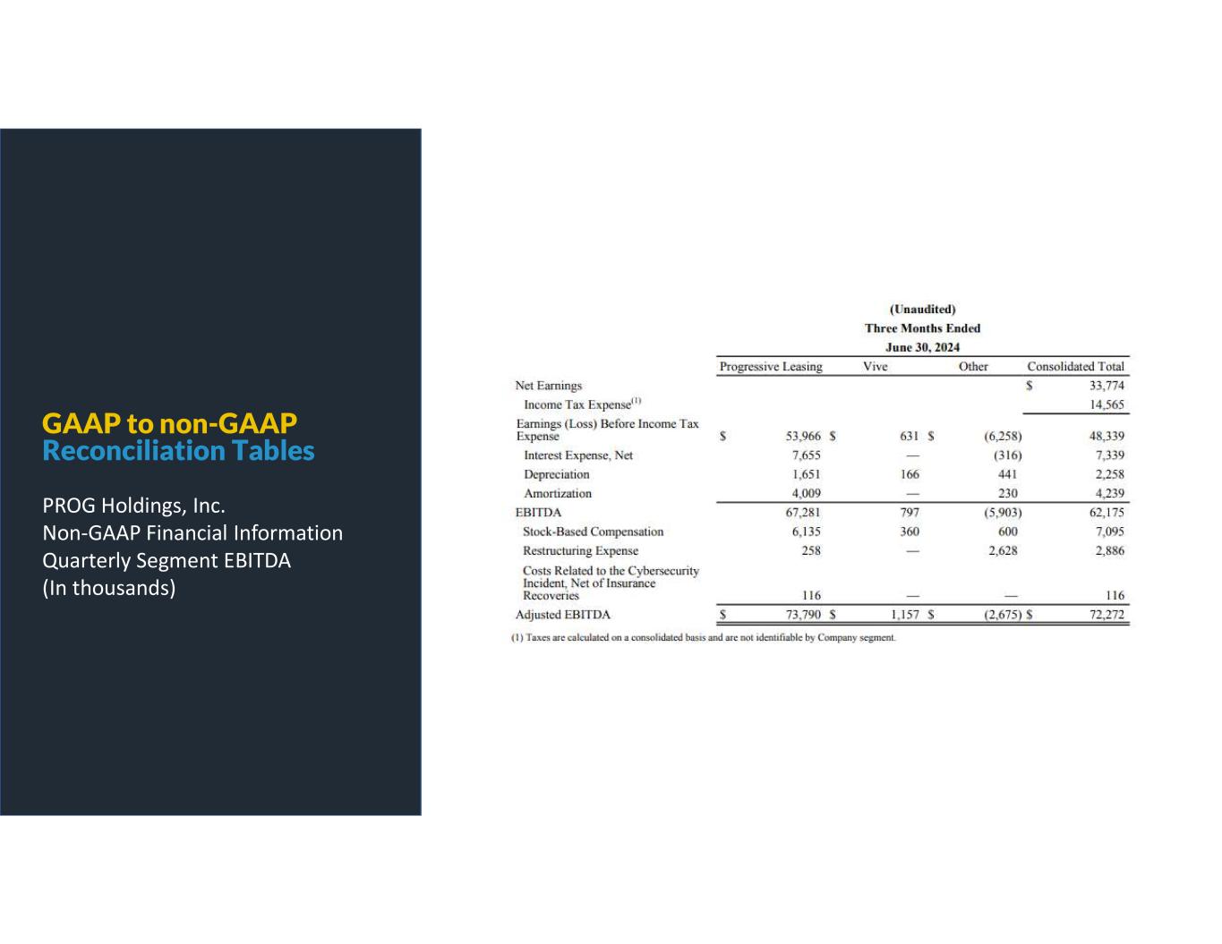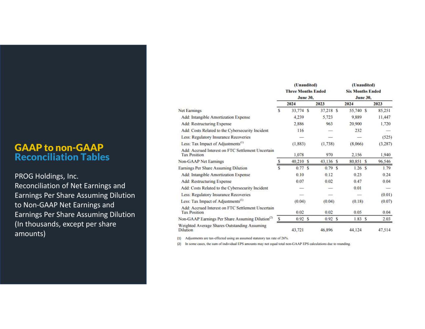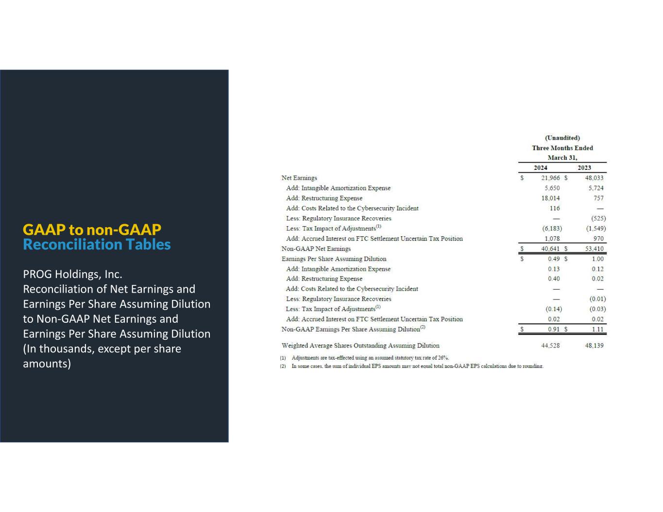 GAAP to non-GAAP Reconciliation Tables PROG Holdings, Inc. Reconciliation of Net Earnings and Earnings Per Share Assuming Dilution to Non-GAAP Net Earnings and Earnings Per Share Assuming Dilution (In thousands, except per share amounts)