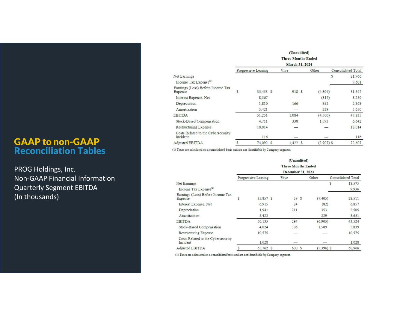 GAAP to non-GAAP Reconciliation Tables PROG Holdings, Inc. Non-GAAP Financial Information Consolidated & Progressive Leasing Adjusted EBITDA %
