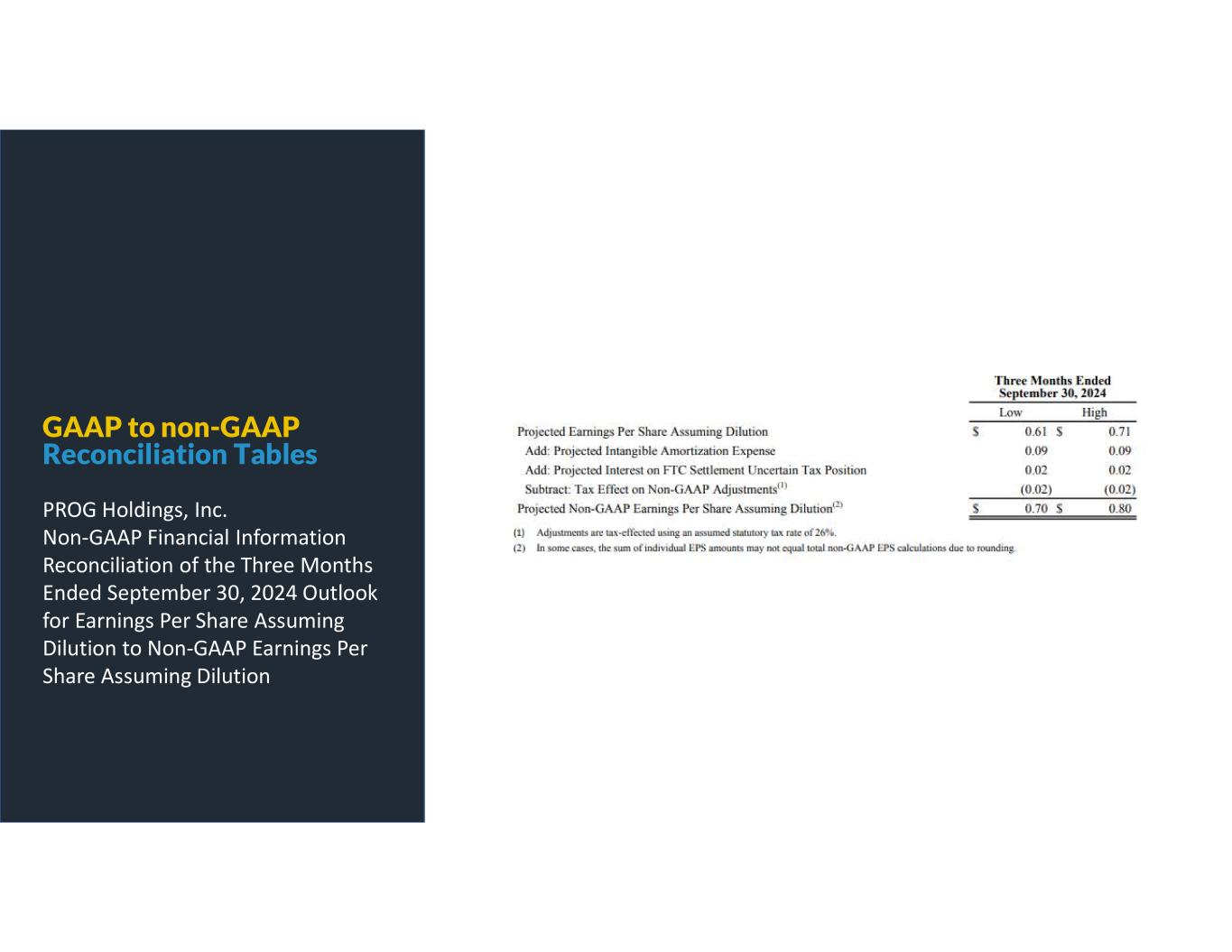 GAAP to non-GAAP Reconciliation Tables PROG Holdings, Inc. Non-GAAP Financial Information Reconciliation of the Three Months Ended September 30, 2024 Outlook for Earnings Per Share Assuming Dilution to Non-GAAP Earnings Per Share Assuming Dilution