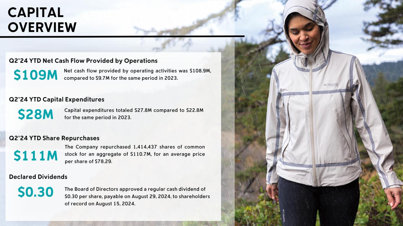 PORTLAND, Ore. - July 25, 2024 - Columbia Sportswear Company (NASDAQ: COLM, the "Company"), a multi-brand global leading innovator in outdoor, active and lifestyle products including apparel, footwear, accessories, and equipment, today announced second quarter 2024 financial results for the period ended June 30, 2024.