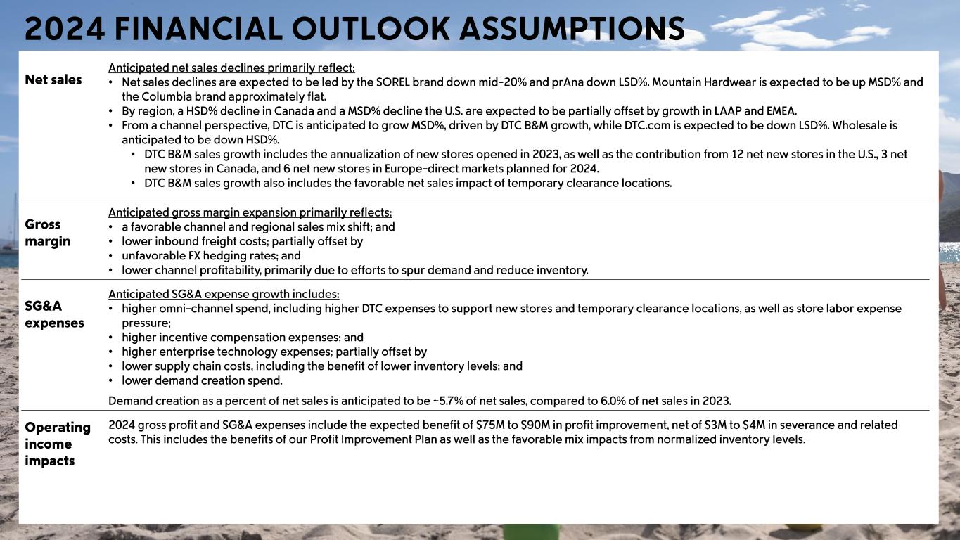 •Net sales of $3.35 to $3.42 billion (unchanged), representing a net sales decline of 4.0 to 2.0 percent (unchanged) compared to 2023.