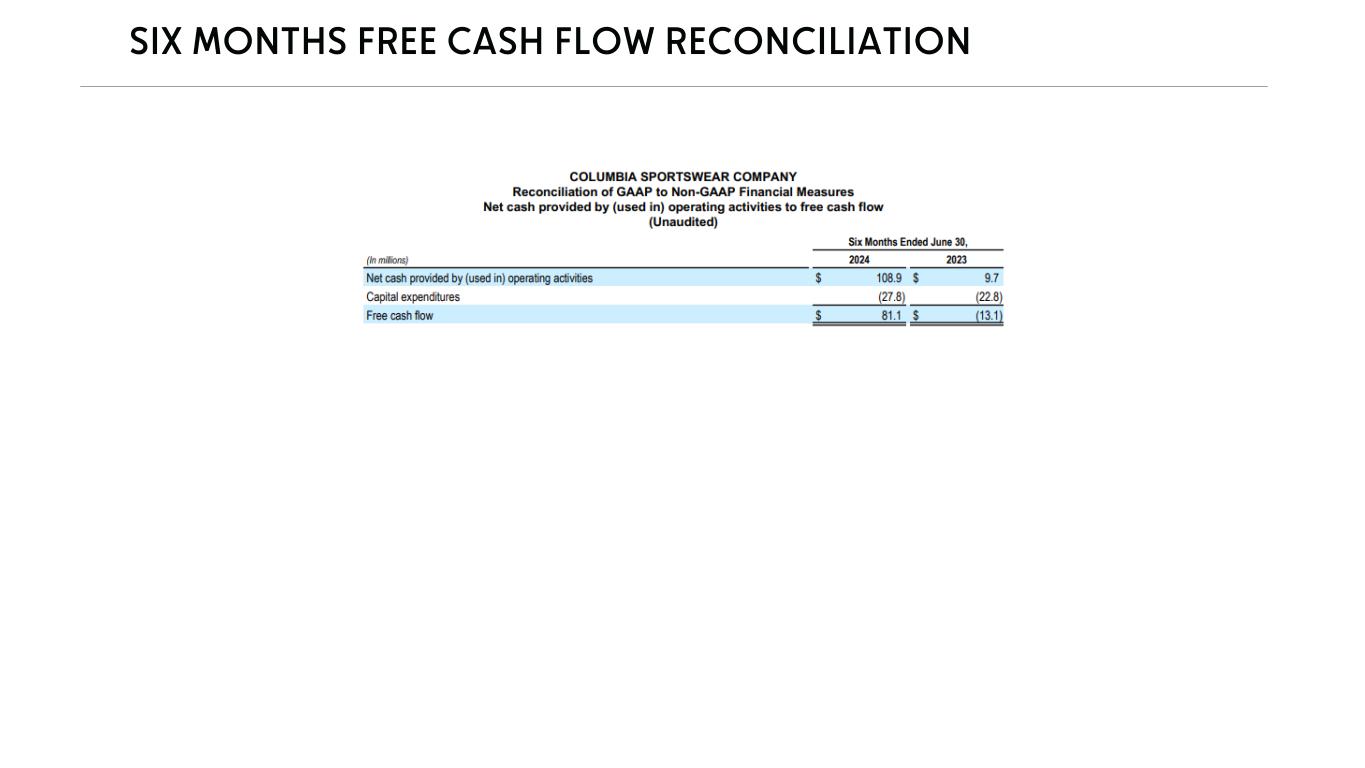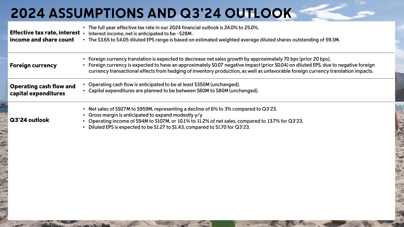 “Our Fall ‘24 order book supports sequential improvement in wholesale sales, with the potential for overall sales to return to growth by the fourth quarter. I’m thrilled with our line-up of innovations for this Fall, including Omni-Heat Infinity, Omni-Max footwear and our newest innovation, Omni-Heat Arctic. As we look toward 2025, I am pleased to report that early indications from our Spring ’25 wholesale orderbook suggest a return to wholesale growth in the first half.