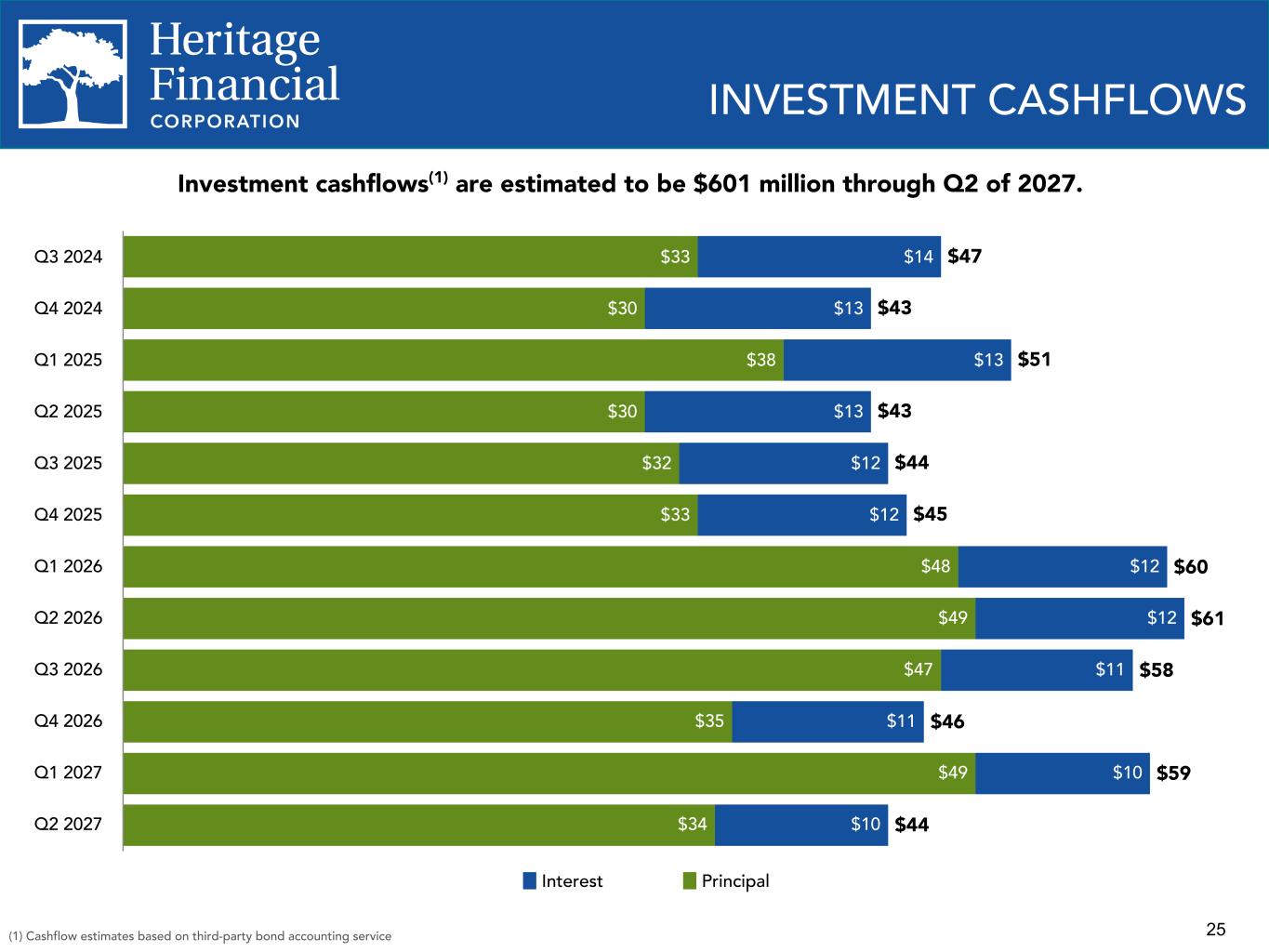 25 $47 $43 $51 $43 $44 $45 $60 $61 $58 $46 $59 $44 $33 $30 $38 $30 $32 $33 $48 $49 $47 $35 $49 $34 $14 $13 $13 $13 $12 $12 $12 $12 $11 $11 $10 $10 Interest Principal Q3 2024 Q4 2024 Q1 2025 Q2 2025 Q3 2025 Q4 2025 Q1 2026 Q2 2026 Q3 2026 Q4 2026 Q1 2027 Q2 2027 INVESTMENT CASHFLOWS Investment cashflows(1) are estimated to be $601 million through Q2 of 2027. (1) Cashflow estimates based on third-party bond accounting service