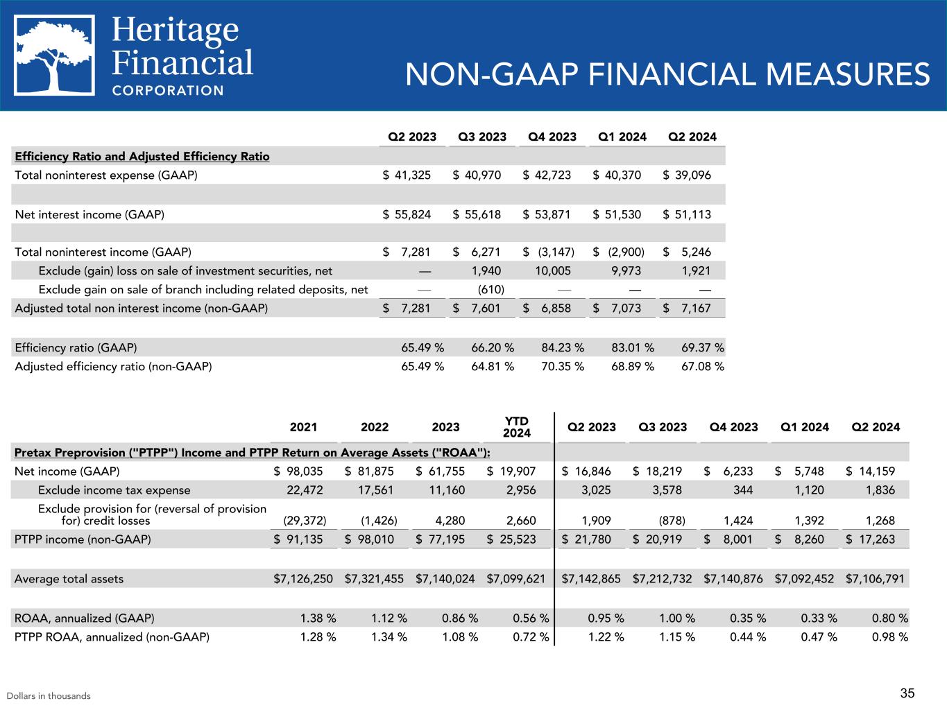 HERITAGE FINANCIAL ANNOUNCES SECOND QUARTER 2024 RESULTS AND DECLARES REGULAR CASH DIVIDEND