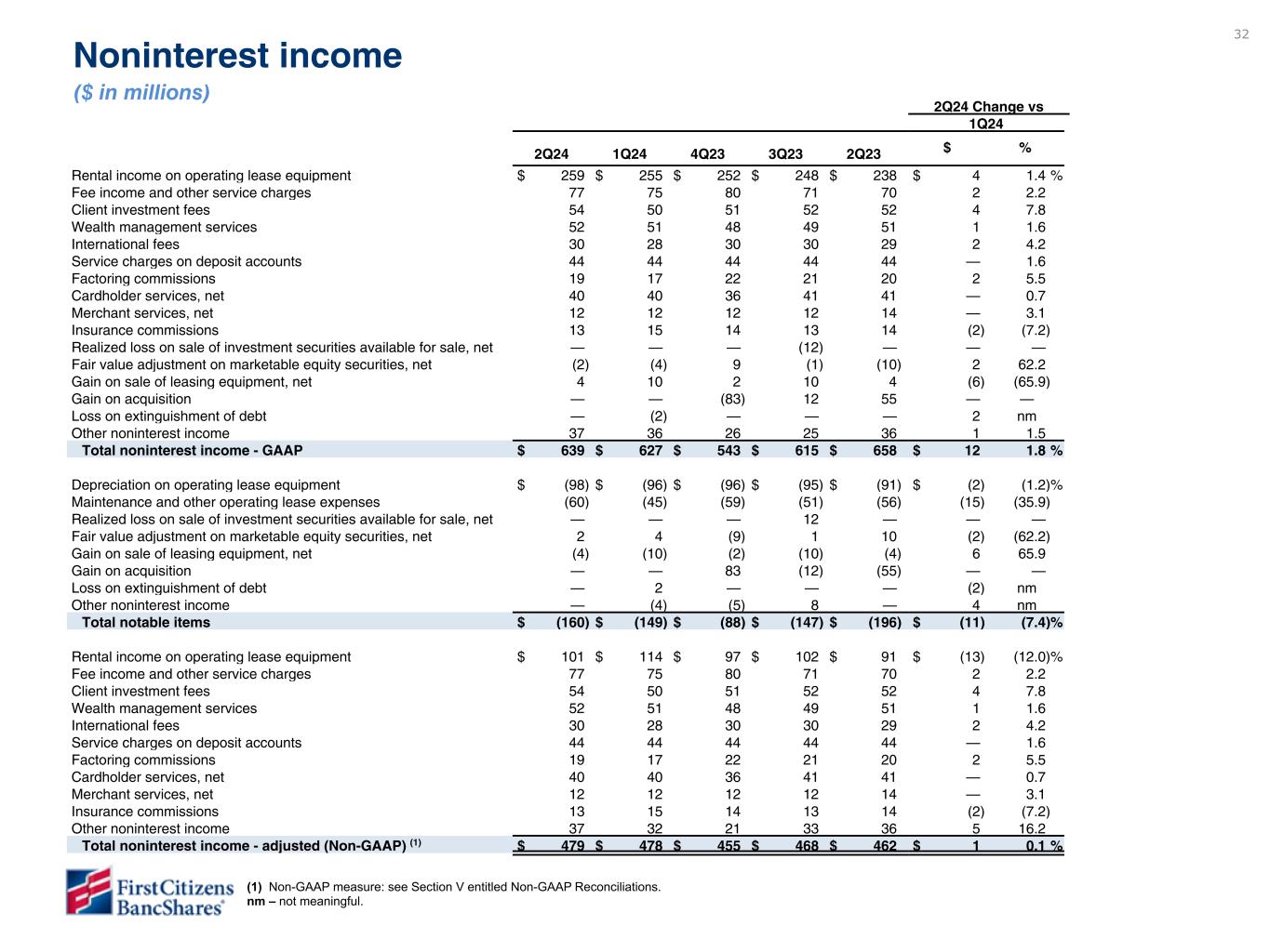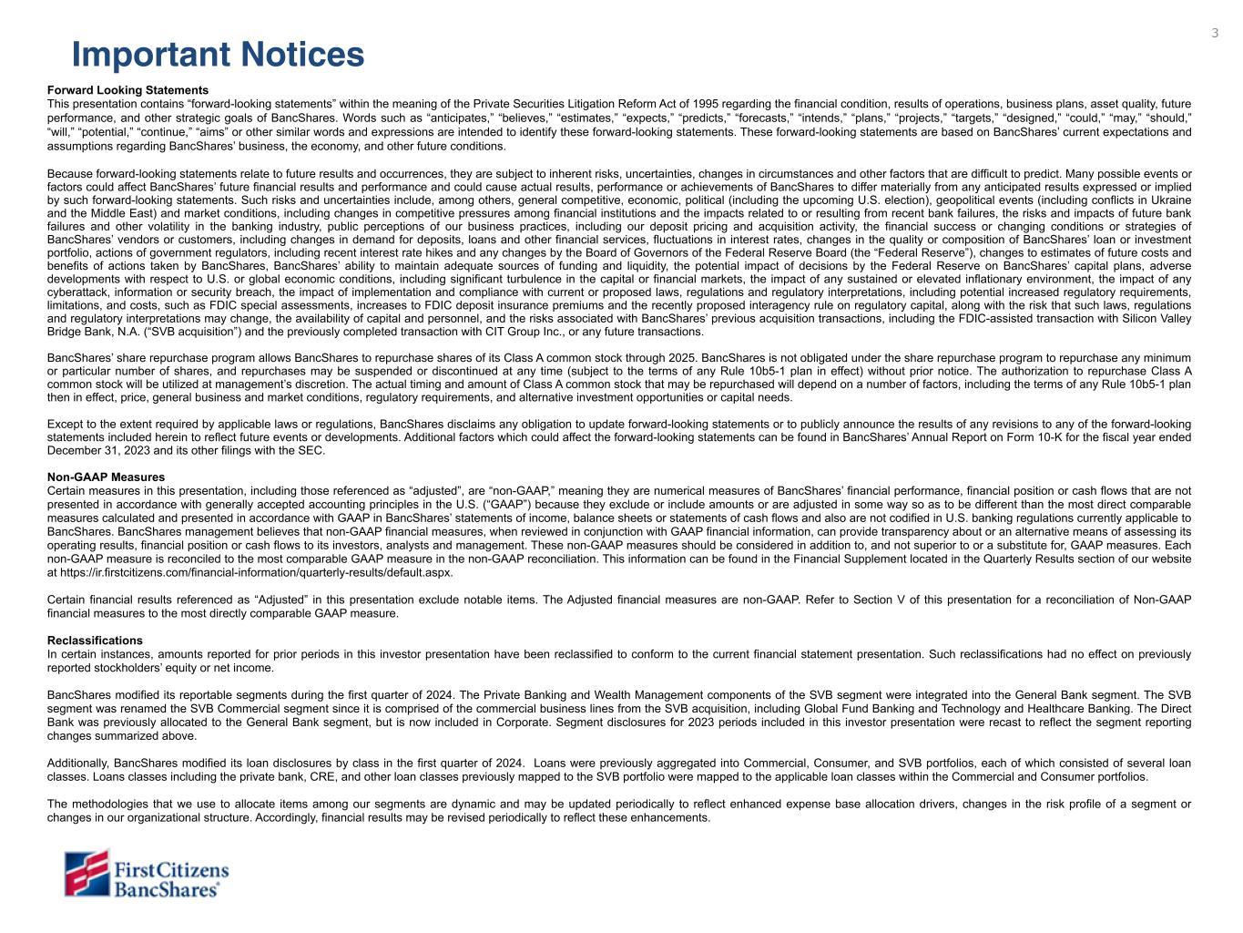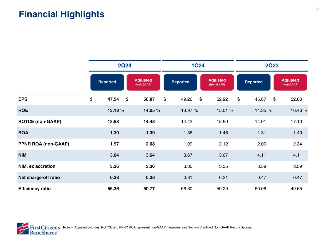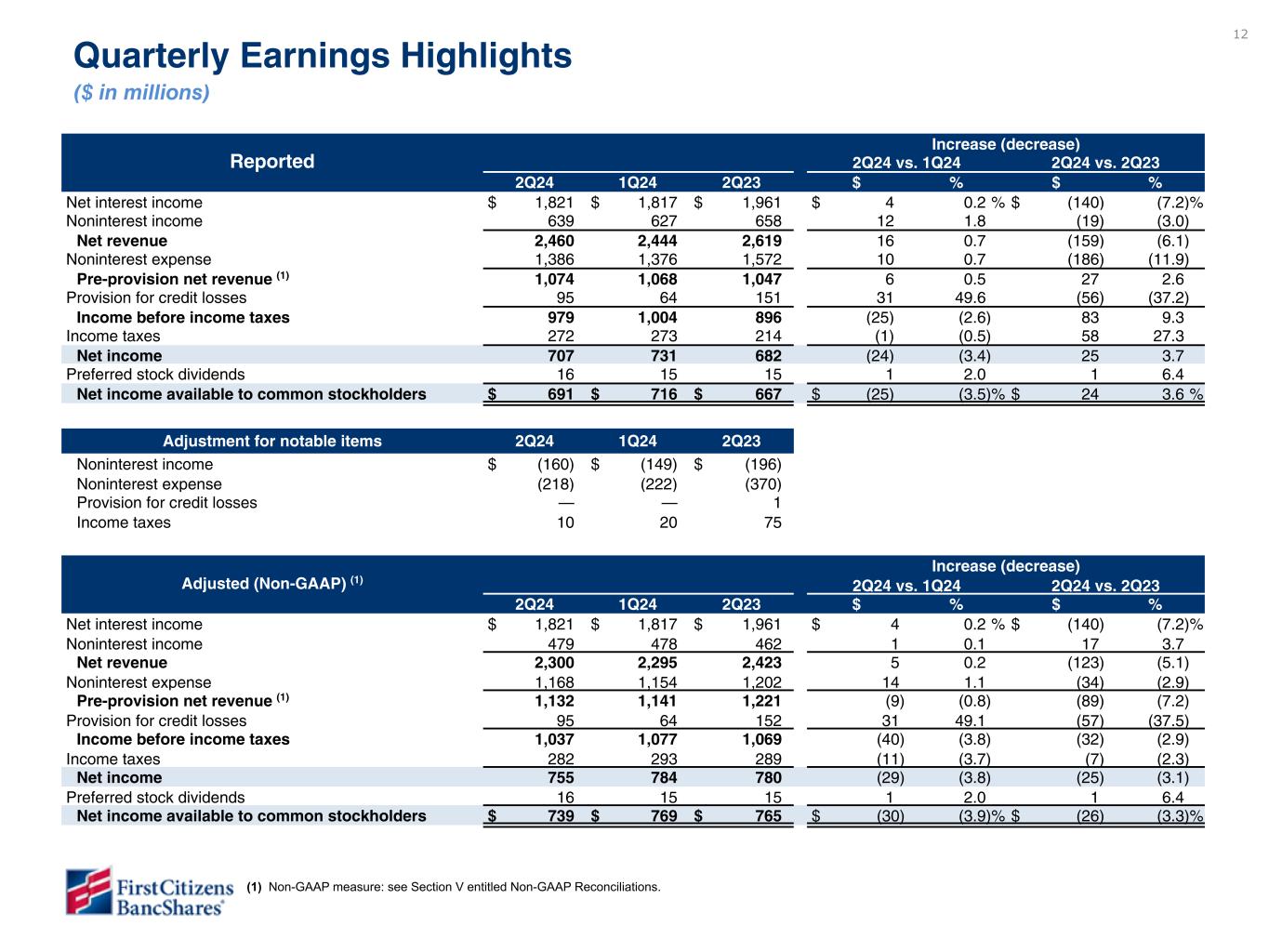 Measures referenced as adjusted below and net interest margin, excluding purchase accounting accretion, are non-GAAP financial measures (refer to the Financial Supplement available at ir.firstcitizens.com or www.sec.gov for a reconciliation of each non-GAAP measure to the most directly comparable GAAP measure).