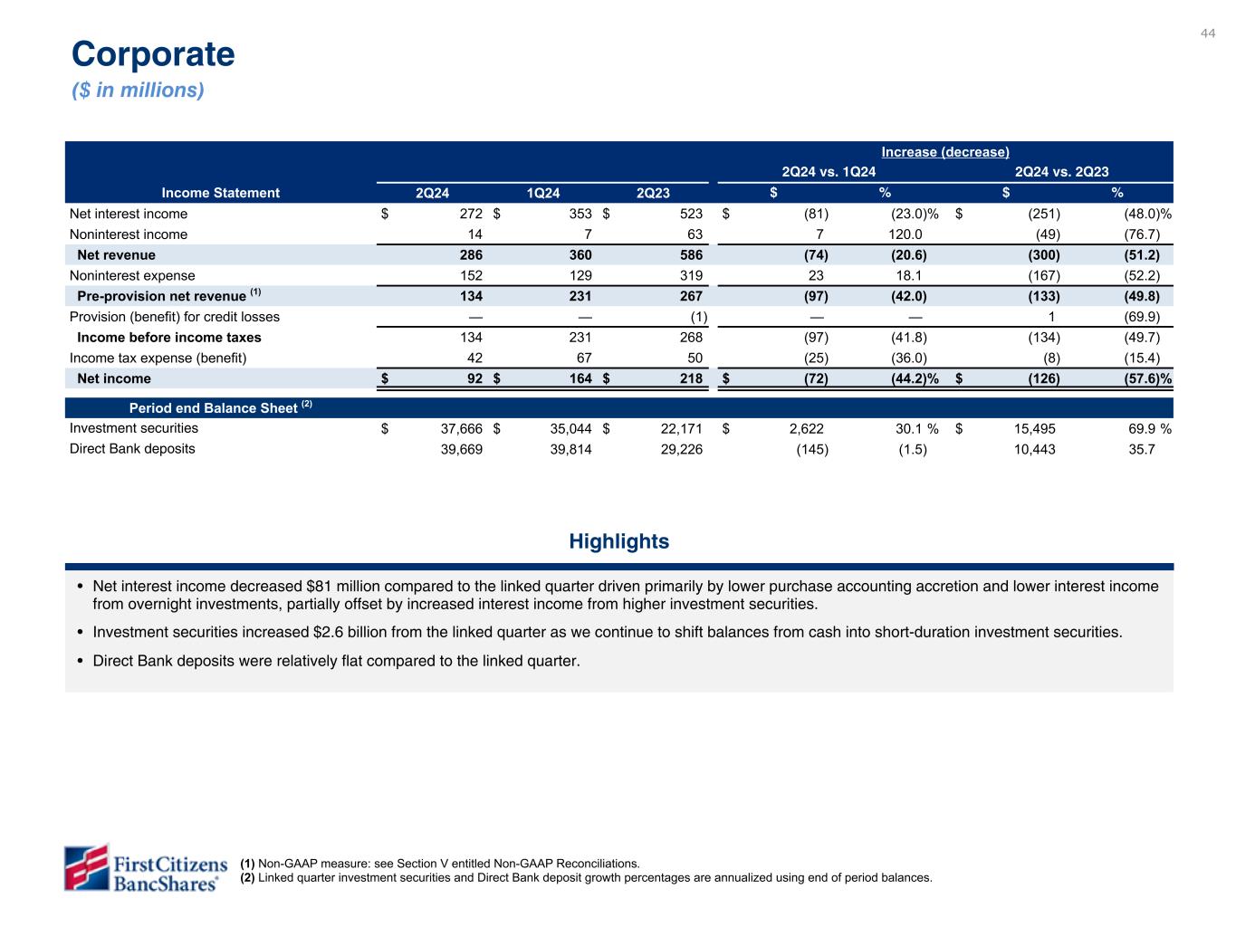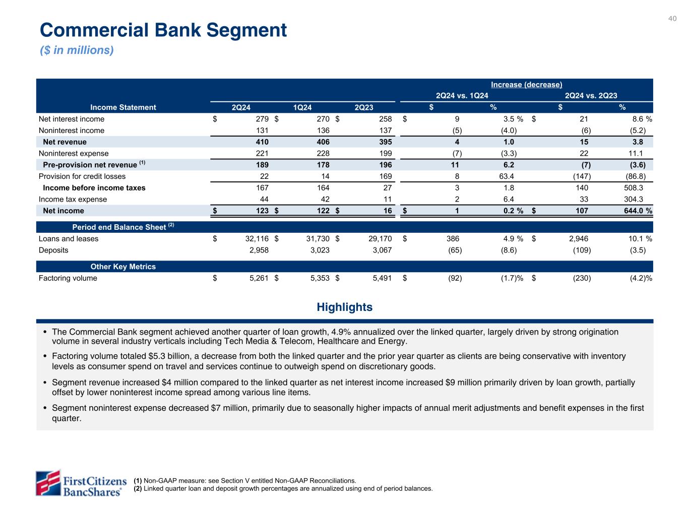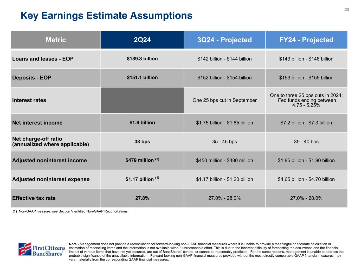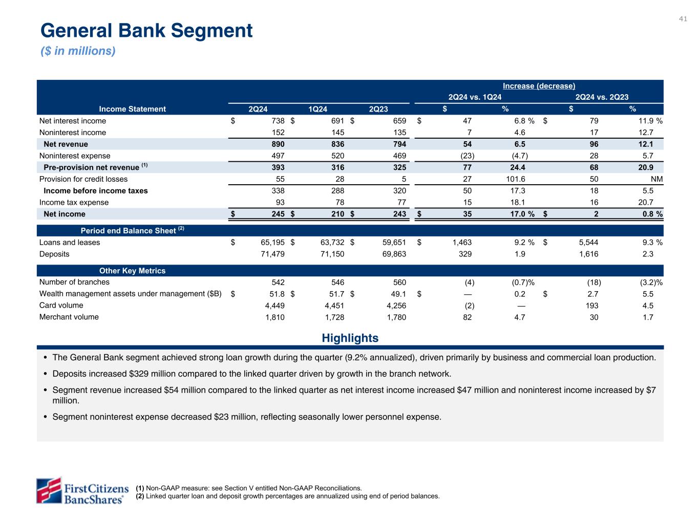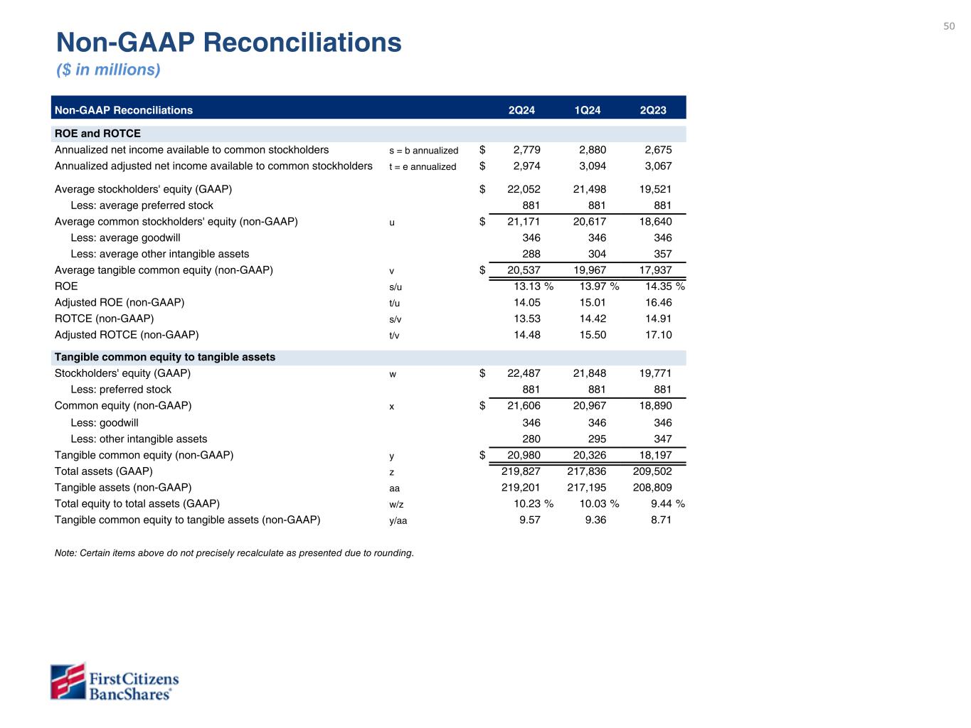 Measures referenced as adjusted below and net interest margin, excluding purchase accounting accretion, are non-GAAP financial measures (refer to the Financial Supplement available at ir.firstcitizens.com or www.sec.gov for a reconciliation of each non-GAAP measure to the most directly comparable GAAP measure).