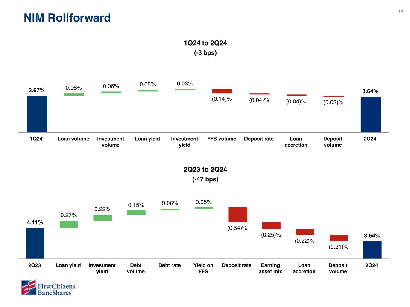 •Net interest margin was 3.64% compared to 3.67% in the linked quarter. Net interest margin, excluding purchase accounting accretion, was 3.36% compared to 3.35% in the linked quarter.