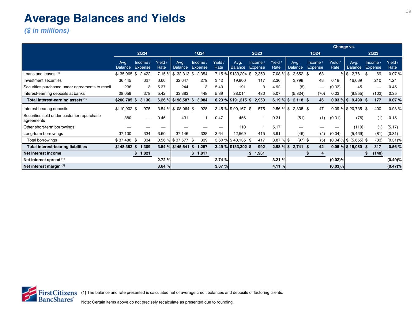 (2) The balance and rate presented is calculated net of average credit balances and deposits of factoring clients. |