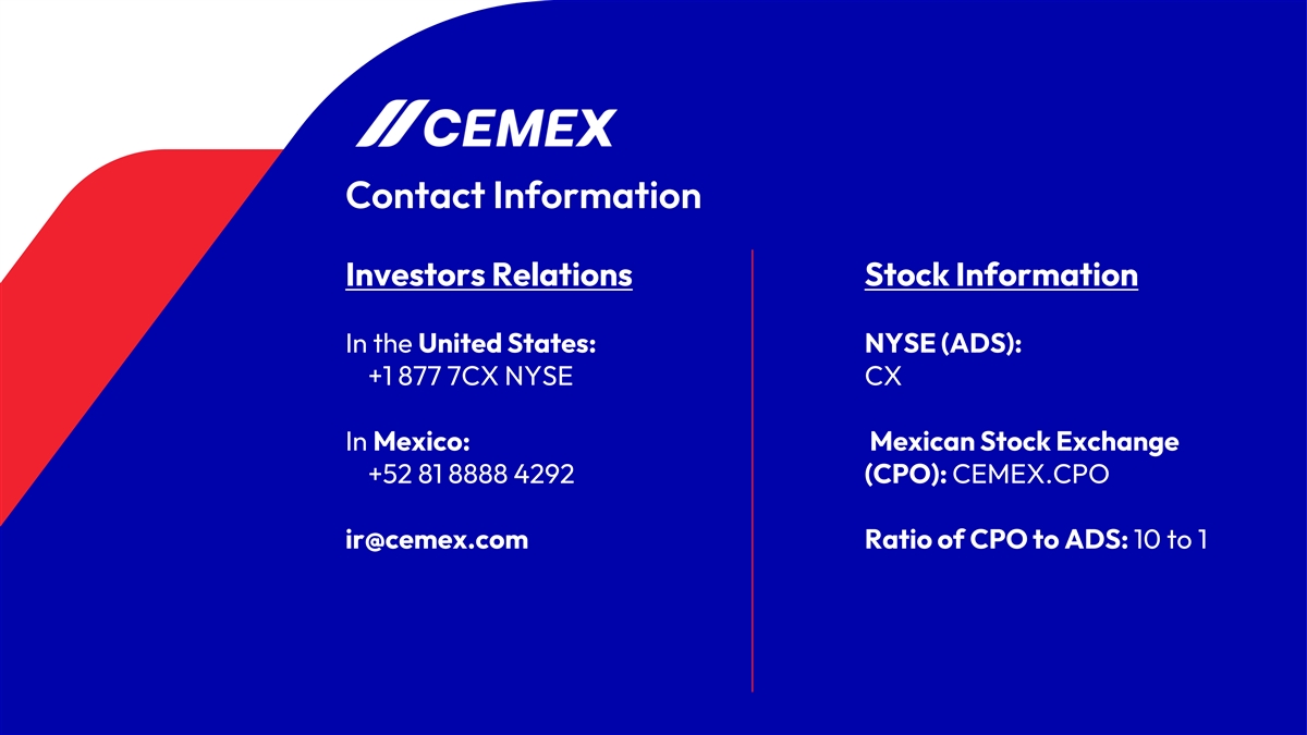 | 3. | Presentation regarding second quarter 2024 results for Cemex. | |