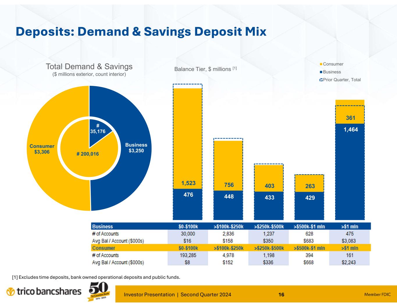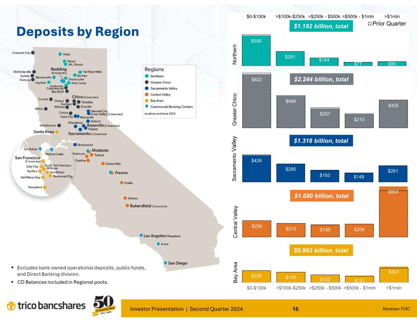 Investor Presentation | Second Quarter 2024 15 $590 $281 $154 $77 $90 - 100 200 300 400 500 600 700 800 $0-$100k >$100k-$250k >$250k - $500k >$500k - $1mln >$1mln Prior Quarter N o rt h er n $226 $193 $142 $131 $301 - 100 200 300 400 500 600 700 800 $0-$100k >$100k-$250k >$250k - $500k >$500k - $1mln >$1mln $256 $215 $199 $206 $804 - 100 200 300 400 500 600 700 800 $426 $290 $193 $148 $261 - 100 200 300 400 500 600 700 800 $822 $490 $297 $210 $425 - 100 200 300 400 500 600 700 800 G re a te r C h ic o Deposits by Region Excludes bank owned operational deposits, public funds, and Direct Banking division. CD Balances included in Regional pools. $1.192 billion, total $2.244 billion, total $1.318 billion, total $1.680 billion, total $0.993 billion, total S a cr am en to V a lle y C e nt ra l V a lle y B a y A re a