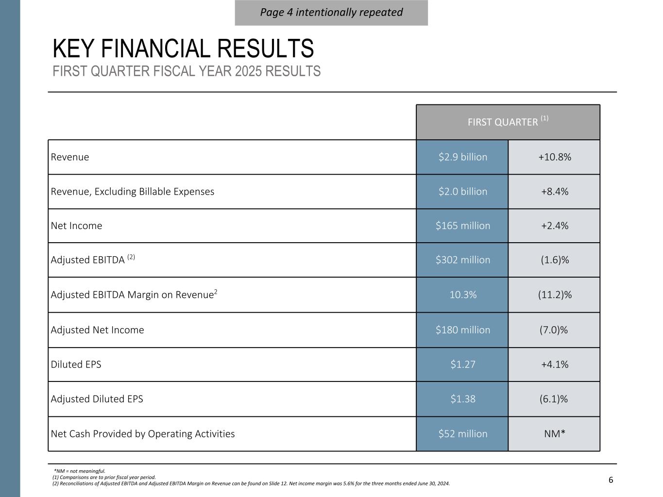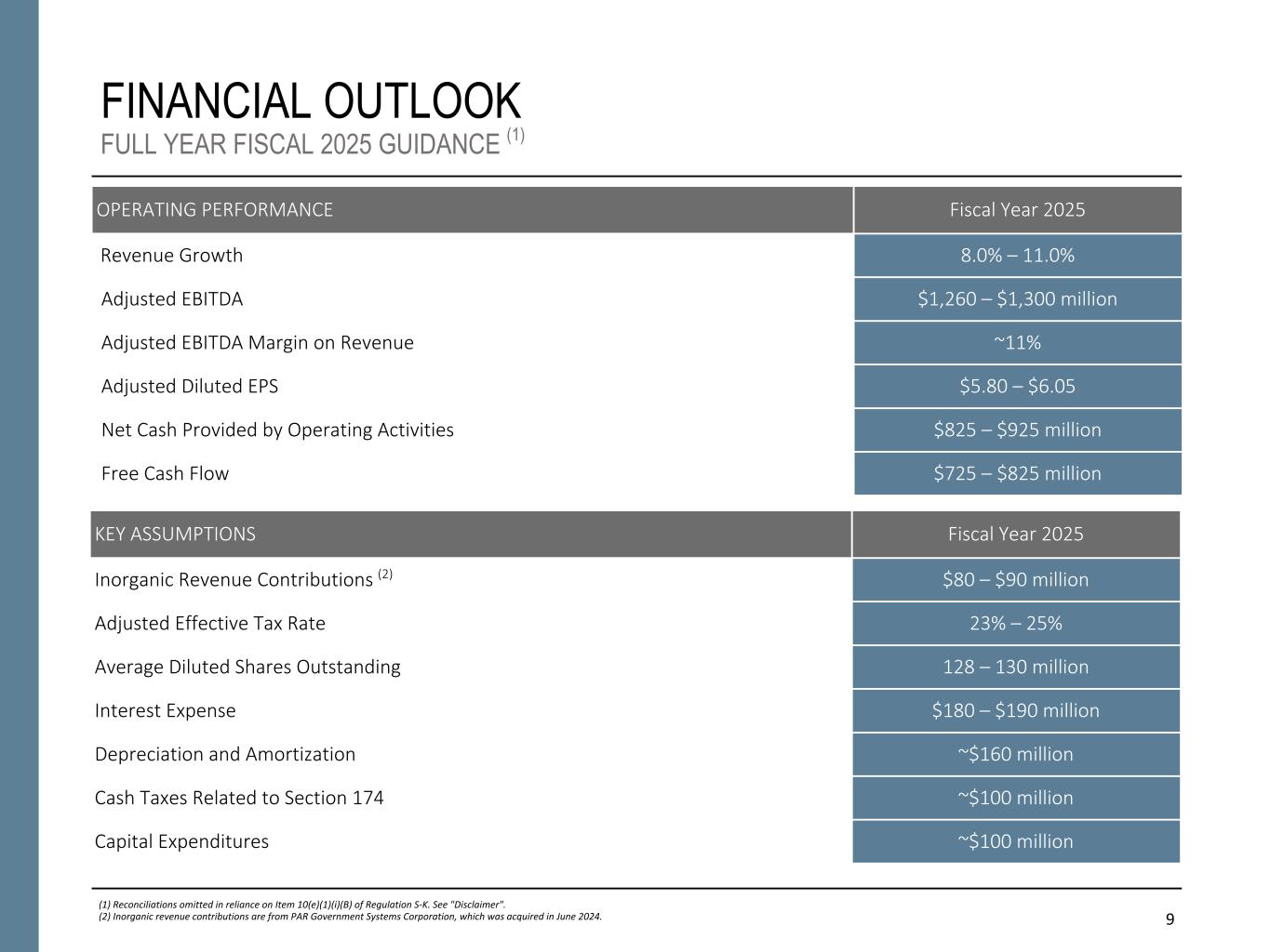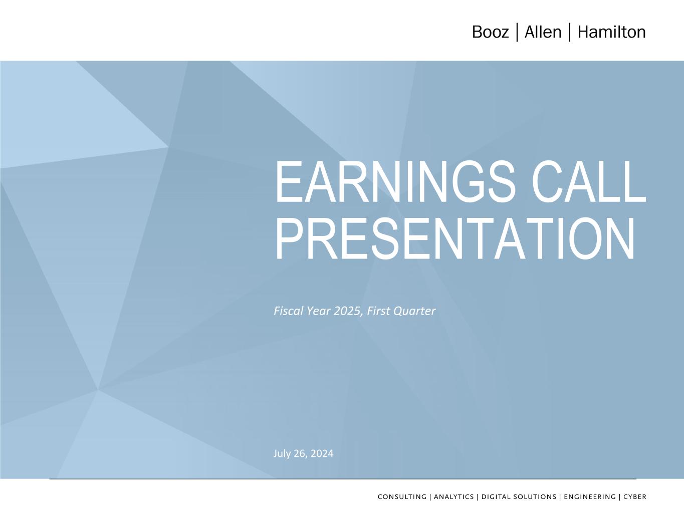 NON-GAAP FINANCIAL INFORMATION “Revenue, Excluding Billable Expenses” represents revenue less billable expenses. Booz Allen uses Revenue, Excluding Billable Expenses because it provides management useful information about the Company’s operating performance by excluding the impact of costs that are not indicative of the level of productivity of its client staff headcount and its overall direct labor, which management believes provides useful information to its investors about its core operations. “Adjusted Operating Income” represents operating income before acquisition and divestiture costs, significant acquisition amortization, and the reserve associated with the U.S. Department of Justice investigation disclosed in Note 20 to the Consolidated Financial Statements in the Company's Form 10-K for the fiscal year ended March 31, 2024. Booz Allen prepares Adjusted Operating Income to eliminate the impact of items it does not consider indicative of ongoing operating performance due to their inherent unusual, extraordinary or non-recurring nature or because they result from an event of a similar nature. “Adjusted EBITDA” represents net income (loss) attributable to common stockholders before income taxes, net interest and other expense and depreciation and amortization and before certain other items, including the change in provision for claimed indirect costs, acquisition and divestiture costs, financing transaction costs, DC tax assessment adjustment, and the reserve associated with the U.S. Department of Justice investigation disclosed in Note 20 to the Consolidated Financial Statements in the Company's Form 10-K for the fiscal year ended March 31, 2024. “Adjusted EBITDA Margin on Revenue” is calculated as Adjusted EBITDA divided by revenue. “Adjusted EBITDA Margin on Revenue, Excluding Billable Expenses” is calculated as Adjusted EBITDA divided by Revenue, Excluding Billable Expenses. Booz Allen prepares Adjusted EBITDA, Adjusted EBITDA Margin on Revenue, and Adjusted EBITDA Margin on Revenue, Excluding Billable Expenses to eliminate the impact of items it does not consider indicative of ongoing operating performance due to their inherent unusual, extraordinary or non-recurring nature or because they result from an event of a similar nature. “Adjusted Net Income” represents net income (loss) attributable to common stockholders before: (i) acquisition and divestiture costs, (ii) significant acquisition amortization, (iii) the reserve associated with the U.S. Department of Justice investigation disclosed in Note 20 to the Consolidated Financial Statements in the Company's Form 10-K for the fiscal year ended March 31, 2024, and (iv) amortization and write-off of debt issuance costs and debt discount, in each case net of the tax effect where appropriate calculated using an assumed effective tax rate. Booz Allen prepares Adjusted Net Income to eliminate the impact of items, net of tax, it does not consider indicative of ongoing operating performance due to their inherent unusual, extraordinary or non-recurring nature or because they result from an event of a similar nature. Booz Allen views Adjusted Net Income as an important indicator of performance consistent with the manner in which management measures and forecasts the Company's performance and the way in which management is incentivized to perform. “Adjusted Diluted EPS” represents diluted EPS calculated using Adjusted Net Income as opposed to net income. Additionally, Adjusted Diluted EPS does not contemplate any adjustments to net income as required under the two-class method as disclosed in the footnotes to the consolidated financial statements of the Company's Form 10-K for the fiscal year ended March 31, 2024. "Free Cash Flow" represents the net cash generated from operating activities less the impact of purchases of property, equipment and software. "Free Cash Flow Conversion" is calculated as Free Cash Flow divided by Adjusted Net Income. "Adjusted Effective Tax Rate" represents income tax expense (benefit) excluding the income tax effects of adjustments to net income, divided by adjusted earnings before income tax expense. "Net Leverage Ratio" is calculated as net debt (total debt less cash) divided by Adjusted EBITDA over the prior twelve months. "Organic Revenue" and "Organic Revenue Growth" represents growth in consolidated revenue adjusted for revenue from acquisitions and divestitures. Booz Allen utilizes and discusses in this release Revenue, Excluding Billable Expenses, Adjusted Operating Income, Adjusted EBITDA, Adjusted EBITDA Margin on Revenue, Adjusted EBITDA Margin on Revenue, Excluding Billable Expenses, Adjusted Net Income, Adjusted Diluted EPS, and organic revenue because management uses these measures for business planning purposes, including managing its business against internal projected results of operations and measuring its performance. Management views Adjusted Operating Income, Adjusted EBITDA, Adjusted EBITDA Margin on Revenue, Adjusted EBITDA Margin on Revenue, Excluding Billable Expenses, Adjusted Net Income, Adjusted Diluted EPS, and organic revenue as measures of the core operating business, which exclude the impact of the items detailed in the supplemental exhibits, as these items are generally not operational in nature. These non-GAAP measures also provide another basis for comparing period to period results by excluding potential differences caused by non-operational and unusual or non-recurring items. Management also utilizes Revenue, Excluding Billable Expenses because it provides management useful information about the Company’s operating performance by excluding the impact of costs that are not indicative of the level of productivity of its client staff headcount and its overall direct labor, which management believes provides useful information to its investors about its core operations. Booz Allen also utilizes and discusses Free Cash Flow in this release becau