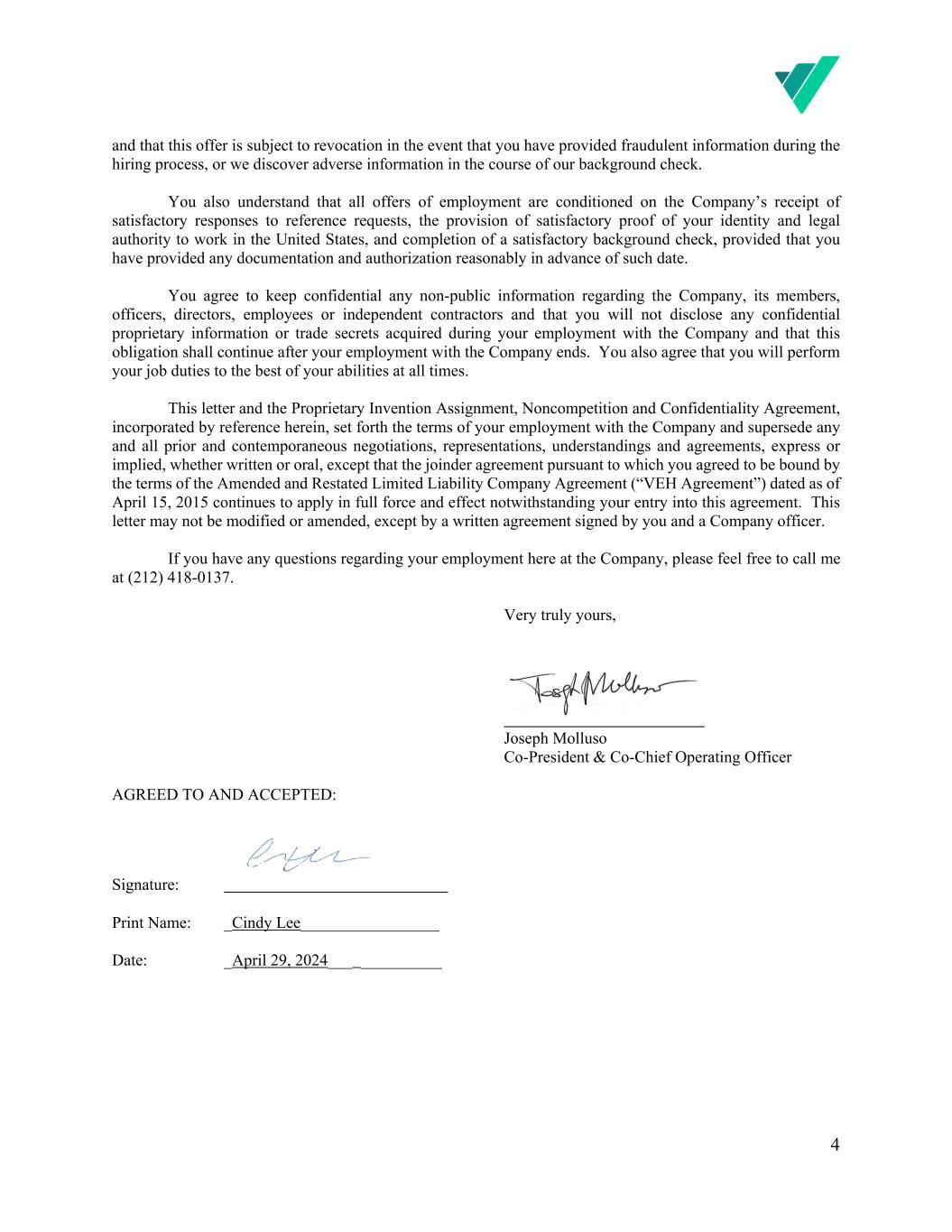 168 Assumption, have the rights and obligations of a Lender under this Agreement, and the assigning Lender thereunder shall, to the extent of the interest assigned by such Assignment and Assumption, be released from its obligations under this Agreement (and, in the case of an Assignment and Assumption covering all of the assigning Lender’s rights and obligations under this Agreement, such Lender shall cease to be a party hereto but shall continue to be entitled to the benefits of (and subject to the obligations and limitations of) Sections 2.13, 2.14, 2.15 and 9.03 and to any fees payable hereunder that have accrued for such Lender’s account but have not yet been paid). Any assignment or transfer by a Lender of rights or obligations under this Agreement that does not comply with this Section 9.04 shall be treated for purposes of this Agreement as a sale by such Lender of a participation in such rights and obligations in accordance with paragraph (c)(i) of this Section 9.04. (iv) The Administrative Agent, acting for this purpose as an agent of the Borrower, shall maintain at one of its offices a copy of each Assignment and Assumption delivered to it and a register for the recordation of the names and addresses of the Lenders, and the Commitment of, and principal and interest amounts of the Loans and LC Disbursements owing to, each Lender pursuant to the terms hereof from time to time (the “Register”). The entries in the Register shall be conclusive absent manifest error, and Holdings, the Borrower, the Administrative Agent, the Issuing Banks and the Lenders shall treat each Person whose name is recorded in the Register pursuant to the terms hereof as a Lender hereunder for all purposes of this Agreement, notwithstanding notice to the contrary. In addition, the Administrative Agent shall maintain on the Register information regarding the designation, and revocation of designation, of any Lender as a Defaulting Lender. The Register shall be available for inspection by the Borrower, the Issuing Banks and any Lender, at any reasonable time and from time to time upon reasonable prior notice. (v) Upon its receipt of a duly completed Assignment and Assumption executed by an assigning Lender and an assignee, the assignee’s completed Administrative Questionnaire and any tax forms required by Section 2.15(e) (unless the assignee shall already be a Lender hereunder), the processing and recordation fee referred to in paragraph (b) of this Section 9.04 and any written consent to such assignment required by paragraph (b) of this Section 9.04, the Administrative Agent shall accept such Assignment and Assumption and record the information contained therein in the Register. No assignment shall be effective for purposes of this Agreement unless it has been recorded in the Register as provided in this paragraph. (vi) The words “execution,” “signed,” “signature” and words of like import in any Assignment and Assumption shall be deemed to include electronic signatures or the keeping of records in electronic form, each of which shall be of the same legal effect, validity or enforceability as a manually executed signature or the use of a paper-based recordkeeping system, as the case may be, to the extent and as provided for in any applicable law, including the Federal Electronic Signatures in Global and National Commerce Act, the New York State Electronic Signatures and Records Act or any other similar state laws based on the Uniform Electronic Transactions Act. (c) (i) Any Lender may, without the consent of, or notice to, the Borrower, the Administrative Agent, the Issuing Banks or the Swingline Lender, sell participations to one or more banks or other Persons other than a natural person, any VV Holder, any Affiliate of Vincent Viola (including any trust established for the benefit of his spouse or children), a Disqualified Lender, Holdings, any Intermediate Parent, the Borrower or any of the Borrower’s Subsidiaries (a “Participant”) in all or a portion of such Lender’s rights and obligations under this Agreement (including all or a portion of its Commitment and the Loans owing to it); provided that (A) such Lender’s obligations under this Agreement shall remain unchanged, (B) such Lender shall remain solely responsible to the other parties hereto for the performance of such obligations and (C) Holdings, the Borrower, the Administrative Agent, the Issuing Banks and the other Lenders shall continue to deal solely and directly with such Lender in connection with such Lender’s rights and