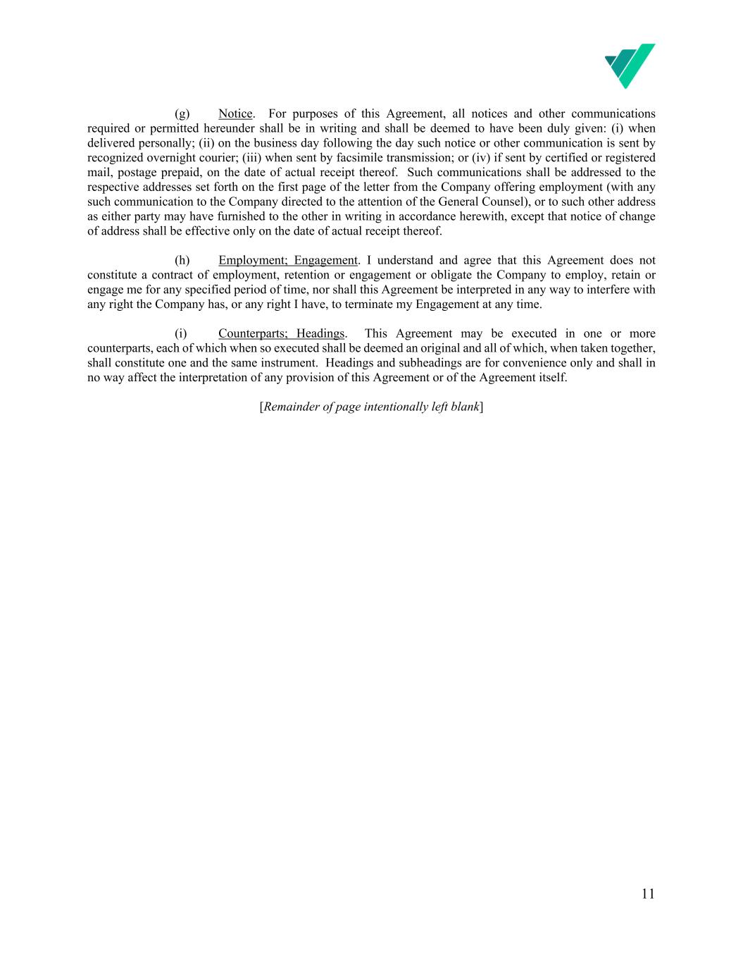 157 (iv) such other representation, warranty and covenant as may be agreed in writing between the Administrative Agent, in its sole discretion, and such Lender. (b) In addition, unless either (1) sub-clause (i) in the immediately preceding clause (a) is true with respect to a Lender or (2) a Lender has provided another representation, warranty and covenant in accordance with sub-clause (iv) in the immediately preceding clause (a), such Lender further (x) represents and warrants, as of the date such Person became a Lender party hereto, to, and (y) covenants, from the date such Person became a Lender party hereto to the date such Person ceases being a Lender party hereto, for the benefit of, the Administrative Agent and not, for the avoidance of doubt, to or for the benefit of the Borrower or any other Loan Party, that the Administrative Agent is not a fiduciary with respect to the assets of such Lender involved in such Lender’s entrance into, participation in, administration of and performance of the Loans, the Letters of Credit, the Commitments and this Agreement (including in connection with the reservation or exercise of any rights by the Administrative Agent under this Agreement, any Loan Document or any documents related hereto or thereto). ARTICLE 9 MISCELLANEOUS Section 9.01. Notices. (a) Except in the case of notices and other communications expressly permitted to be given by telephone, all notices and other communications provided for herein shall be in writing and shall be delivered by hand or overnight courier service, mailed by certified or registered mail or sent by fax or other electronic transmission, as follows: (i) if to Holdings, the Borrower, the Administrative Agent, the Issuing Banks or the Swingline Lender, to the address, fax number, e-mail address or telephone number specified for such Person on Schedule 9.01; and (ii) if to any Lender, to it at its address (or fax number, telephone number or e-mail address) set forth in its Administrative Questionnaire (including, as appropriate, notices delivered solely to the Person designated by a Lender on its Administrative Questionnaire then in effect for the delivery of notices that may contain material non-public information relating to the Borrower). Notices and other communications sent by hand or overnight courier service, or mailed by certified or registered mail, shall be deemed to have been given when received; notices and other communications sent by telecopier shall be deemed to have been given when sent (except that, if not given during normal business hours for the recipient, shall be deemed to have been given at the opening of business on the next business day for the recipient). Notices and other communications delivered through electronic communications to the extent provided in subsection (b) below shall be effective as provided in such subsection (b). (b) Electronic Communications. Notices and other communications to the Lenders, the Issuing Banks and the Swingline Lender hereunder may be delivered or furnished by electronic communication (including e-mail and Internet or intranet websites) pursuant to procedures reasonably approved by the Administrative Agent, provided that the foregoing shall not apply to notices to any Lender, the Issuing Banks or the Swingline Lender pursuant to Article 2 if such Lender, the Issuing Banks or the Swingline Lender, as applicable, has notified the Administrative Agent that it is incapable of receiving notices under such Article by electronic communication. The Administrative Agent or the Borrower may, in its discretion, agree to accept notices and other communications to it hereunder by electronic communications