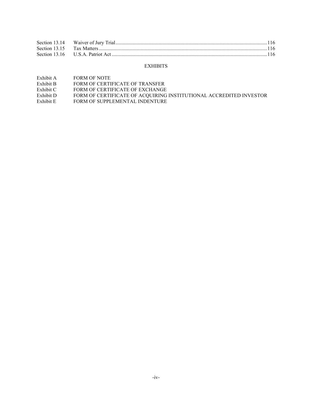 iv SCHEDULES: Schedule 1.01(a) — Disqualified Lenders Schedule 1.01(ba) — LC Commitments Schedule 2.01 — CommitmentsDisqualified Lenders Schedule 3.12 — Subsidiaries Schedule 3.18 — Regulatory Status and Memberships Held Schedule 5.16 — Post-Closing Obligations Schedule 6.01 — Existing Indebtedness Schedule 6.02 — Existing Liens Schedule 6.04(e) — Existing Investments Schedule 6.05 — Dispositions Schedule 6.09 — Existing Affiliate Transactions Schedule 6.10 — Existing Restrictions Schedule 9.01 — Notices EXHIBITS: Exhibit A-1 — Form of Assignment and Assumption Exhibit A-2 — Form of Borrower Assignment and Assumption Exhibit B — Form of Guarantee Agreement Exhibit C — Form of Perfection Certificate Exhibit D — Form of Collateral Agreement Exhibit E — Form of Note Exhibit F-1 — Form of First Lien Intercreditor Agreement Exhibit F-2 — Form of Junior Lien Intercreditor Agreement Exhibit G — Form of Closing Date Certificate Exhibit H — Form of Intercompany Note Exhibit I — Form of Specified Discount Prepayment Notice Exhibit J — Form of Specified Discount Prepayment Response Exhibit K — Form of Discount Range Prepayment Notice Exhibit L — Form of Discount Range Prepayment Offer Exhibit M — Form of Solicited Discounted Prepayment Notice Exhibit N — Form of Solicited Discounted Prepayment Offer Exhibit O — Form of Acceptance and Prepayment Notice Exhibit P-1 — Form of U.S. Tax Compliance Certificate (For Foreign Lenders That Are Not Partnerships For U.S. Federal Income Tax Purposes) Exhibit P-2 — Form of U.S. Tax Compliance Certificate (For Foreign Lenders That Are Partnerships For U.S. Federal Income Tax Purposes) Exhibit P-3 — Form of U.S. Tax Compliance Certificate (For Non-U.S. Participants That Are Not Partnerships For U.S. Federal Income Tax Purposes) Exhibit P-4 — Form of U.S. Tax Compliance Certificate (For Non-U.S. Participants That Are Partnerships For U.S. Federal Income Tax Purposes) Exhibit Q — Form of Closing Certificate