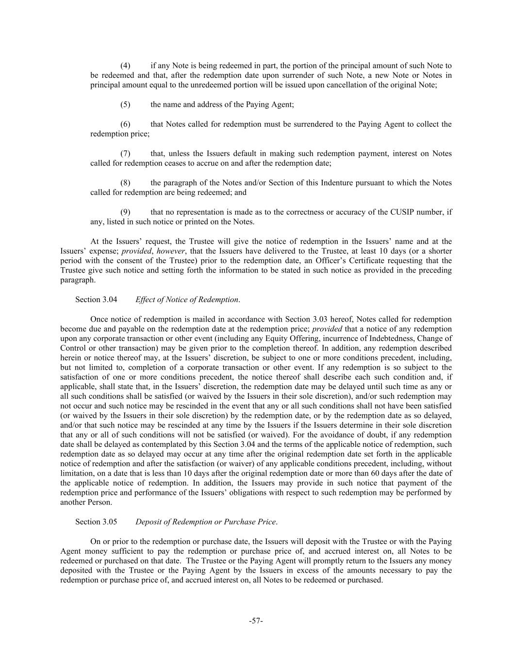 124 securities or other debt which are exchanged for or otherwise replace such Customary Bridge Loans, if any, shall be subject to the requirements of this clause (5)) and/or Indebtedness in an aggregate principal amount outstanding that is not in excess of the then remaining capacity under the Inside Maturity Basket; provided that at the time of incurrence thereof, the aggregate outstanding principal amount of Indebtedness (other than Indebtedness constituting any revolving facility) incurred by Restricted Subsidiaries that are not Loan Parties or Regulated Subsidiaries under clauses (x), (y) and (z) collectively, together with the Indebtedness incurred by Restricted Subsidiaries that are not Loan Parties or Regulated Subsidiaries under clauses (x), (y) and (z) of Section 6.01(a)(ix) and Section 6.01(a)(xxi), collectively, shall not exceed the greater of $150,000,000 and 10% of Consolidated EBITDA calculated on a Pro Forma Basis for the most recently ended Test Period for which financial statements are available and (B) any Permitted Refinancing thereof; (ix) (A) Indebtedness of the Borrower or any of its Restricted Subsidiaries incurred to finance, or assumed in connection with, a Permitted Acquisition or other Investment permitted under Section 6.04 or New Project not prohibited hereunder and existing Indebtedness of any Person that becomes a Restricted Subsidiary in connection with such Permitted Acquisition, Investment or New Project; provided that (1) after giving effect to the assumption or incurrence of such Indebtedness and the use of proceeds thereof, (x) in the case of Indebtedness secured by Liens on the Collateral ranking pari passu with the Liens on the Collateral securing the Initial Term B-1 Loans, the Net First Lien Leverage Ratio calculated on a Pro Forma Basis as of the end of the most recent Test Period for which financial statements are available either (I) does not exceed the First Lien Incurrence Ratio or (II) is not greater than the Net First Lien Leverage Ratio immediately prior to such Permitted Acquisition, other Investment or New Project, (y) in the case of Indebtedness secured by Liens on the Collateral ranking junior to the Liens on the Collateral securing the Initial Term B-1 Loans, the Net Secured Leverage Ratio calculated on a Pro Forma Basis as of the end of the most recent Test Period for which financial statements are available either (I) does not exceed the Secured Leverage Incurrence Ratio or (II) is not greater than the Net Secured Leverage Ratio immediately prior to such Permitted Acquisition, other Investment or New Project and (z) in the case of other Indebtedness, if the Unsecured Leverage Test is satisfied; provided that at the time of incurrence thereof, the aggregate outstanding principal amount of Indebtedness (other than Indebtedness constituting any revolving facility) incurred by Restricted Subsidiaries that are not Loan Parties or Regulated Subsidiaries under clauses (x), (y) and (z) collectively, together with the Indebtedness incurred by Restricted Subsidiaries that are not Loan Parties or Regulated Subsidiaries under clauses (x), (y) and (z) of Section 6.01(a)(viii) and Section 6.01(a)(xii), collectively, shall not exceed the greater of $150,000,000 and 10% of Consolidated EBITDA calculated on a Pro Forma Basis for the most recently ended Test Period for which financial statements are available, (2) [reserved], (3)(w) such Indebtedness shall, if incurred by a Loan Party, not be incurred by or subject to any Guarantee by any Person other than a Loan Party or secured by any assets other than Collateral, (x) the security agreements relating to such Indebtedness (to the extent secured by Collateral) shall be substantially the same as the Security Documents (with any material differences being reasonably satisfactory to the Administrative Agent), (y) any Indebtedness incurred by a Restricted Subsidiary that is not a Loan Party shall only be secured by assets of Restricted Subsidiaries that are not Loan Parties and (z) if such Indebtedness is secured by Collateral, any agent or trustee under the agreements or indenture governing such Indebtedness shall be subject to the First Lien Intercreditor Agreement or the Junior Lien Intercreditor Agreement, as applicable; provided that if such Indebtedness is issued pursuant to an agreement or indenture that has not previously been made subject thereto, then the Loan Parties, the Administrative Agent and the Senior Representative for such Indebtedness shall have executed and delivered an appropriate supplement or joinder to the First Lien Intercreditor Agreement or the Junior Lien Intercreditor Agreement, as applicable, (4) such Indebtedness (other than existing Indebtedness that is assumed (and not incurred) not in contemplation of such Permitted Acquisition or Investment) shall not have any mandatory prepayment provisions (other than provisions related to customary asset sale and change of control offers and amortization up