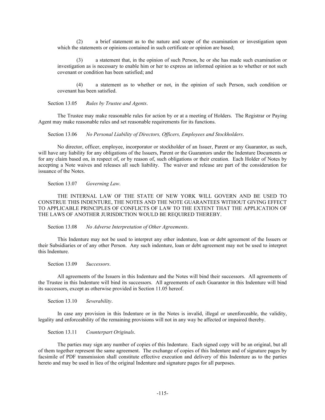 109 Section 3.07. Compliance with Laws and Agreements. Each of Holdings, the Borrower and its Restricted Subsidiaries is in compliance with (i) its Organizational Documents, (ii) all Requirements of Law applicable to it or its property and (iii) all indentures and other agreements and instruments binding upon it or its property, except, in the case of clauses (ii) and (iii) of this Section, where the failure to do so, individually or in the aggregate, could not reasonably be expected to result in a Material Adverse Effect. Section 3.08. Investment Company Status. No Loan Party is required to be registered as an “investment company” within the meaning of the Investment Company Act of 1940, as amended from time to time. Section 3.09. Taxes. Except as could not, individually or in the aggregate, reasonably be expected to have a Material Adverse Effect, Holdings, the Borrower and each Restricted Subsidiary (a) have timely filed or caused to be filed all Tax returns and reports required to have been filed and (b) have paid or caused to be paid all Taxes required to have been paid (whether or not shown on a Tax return) including in their capacity as tax withholding agents, except any Taxes (i) that are not overdue by more than 30 days or (ii) that are being contested in good faith by appropriate proceedings, provided that Holdings, the Borrower or such Subsidiary, as the case may be, has set aside on its books adequate reserves therefor in accordance with GAAP. There are no audits, assessments, claims or other Tax proceedings against Holdings, the Borrower or any Restricted Subsidiary that could, individually or in the aggregate, reasonably be expected to have a Material Adverse Effect. Section 3.10. ERISA. (a) Except as could not, individually or in the aggregate, reasonably be expected to result in a Material Adverse Effect, each Plan is in compliance with the applicable provisions of ERISA, the Code and other federal or state laws. (b) Except as could not reasonably be expected, individually or in the aggregate, to result in a Material Adverse Effect, (i) no ERISA Event has occurred or is reasonably expected to occur, (ii) neither the Borrower nor any ERISA Affiliate has incurred, or reasonably expects to incur, any liability under Title IV of ERISA with respect to any Plan (other than premiums due and not delinquent under Section 4007 of ERISA), (iii) neither the Borrower nor any ERISA Affiliate has incurred, or reasonably expects to incur, any liability (and no event has occurred which, with the giving of notice under Section 4219 of ERISA, would result in such liability) under Sections 4201 or 4243 of ERISA with respect to a Multiemployer Plan and (iv) neither the Borrower nor any ERISA Affiliate has engaged in a transaction that could be subject to Section 4069 or 4212(c) of ERISA. Section 3.11. Disclosure. (a) Neither (i) the Information Materials as of the ClosingFirst Amendment Effective Date nor (ii) any of the other reports, financial statements, certificates or other written information furnished by or on behalf of any Loan Party to the Administrative Agent or any Lender in connection with the negotiation of any Loan Document or delivered thereunder (as modified or supplemented by other information so furnished) when taken as a whole contains any material misstatement of fact or omits to state any material fact necessary to make the statements therein, in the light of the circumstances under which they were made, not materially misleading; provided that, with respect to projected financial information, Holdings and the Borrower represent only that such information was prepared in good faith based upon assumptions believed by them to be reasonable at the time delivered and, if such projected financial information was delivered prior to the ClosingFirst Amendment Effective Date in connection with the transactions consummated on the ClosingFirst Amendment Effective Date, as of the ClosingFirst Amendment Effective Date, it being