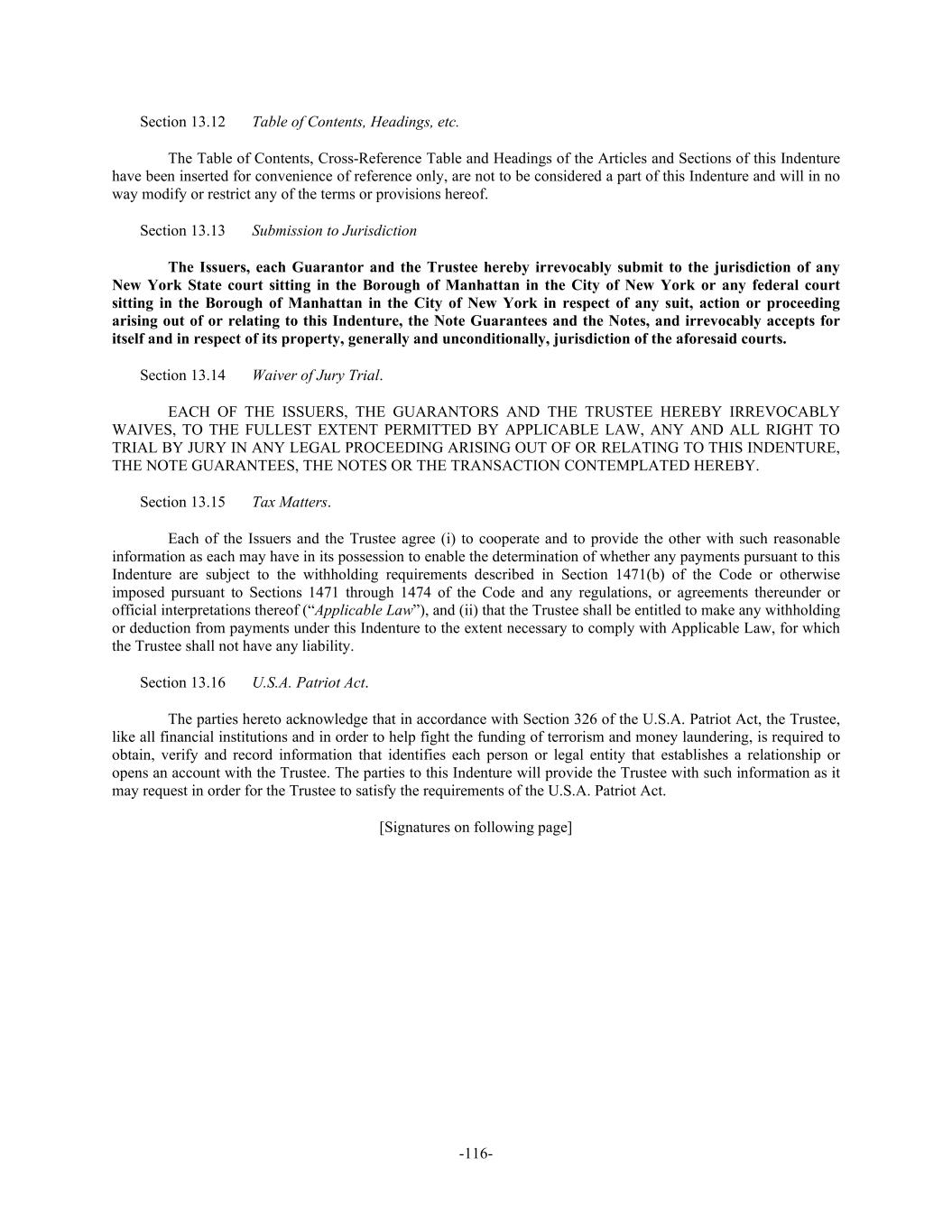 -5- SECTION 5. Applicable Law; Waiver of Jury Trial. (A) THIS AMENDMENT SHALL BE GOVERNED BY, AND CONSTRUED IN ACCORDANCE WITH, THE LAW OF THE STATE OF NEW YORK WITHOUT GIVING EFFECT TO ANY CONFLICTS PROVISIONS THAT WOULD RESULT IN THE APPLICATION OF THE LAWS OF ANOTHER JURISDICTION. (B) EACH PARTY HERETO HEREBY IRREVOCABLY WAIVES, TO THE FULLEST EXTENT PERMITTED BY APPLICABLE LAW, ANY RIGHT IT MAY HAVE TO A TRIAL BY JURY IN ANY LEGAL ACTION OR PROCEEDING DIRECTLY OR INDIRECTLY ARISING OUT OF OR RELATING TO THIS AMENDMENT (WHETHER BASED ON CONTRACT, TORT OR ANY OTHER THEORY). SECTION 6. Submission to Jurisdiction; Consent to Service of Process. This Amendment shall further be subject to the provisions of Sections 9.09(b), (c) and (d) of the Credit Agreement mutatis mutandis. SECTION 7. Headings. The Section headings used herein are for convenience of reference only, are not part of this Amendment and are not to affect the construction of, or to be taken into consideration in interpreting, this Amendment. SECTION 8. Counterparts. This Amendment may be executed in any number of counterparts and by different parties hereto on separate counterparts, each of which when so executed and delivered shall be deemed to be an original, but all of which when taken together shall constitute a single instrument. Delivery of an executed counterpart of a signature page of this Amendment by facsimile or any other electronic transmission shall be effective as delivery of an original executed counterpart hereof. The words “execution,” “signed,” “signature,” “delivery,” and words of like import in this Amendment or any other document to be signed in connection with this Amendment and the transactions contemplated hereby shall be deemed to include electronic signatures, electronic records or the electronic matching of assignment terms and contract formations on electronic platforms approved by the Administrative Agent, each of which shall be of the same legal effect, validity or enforceability as a manually executed signature, physical delivery thereof or the use of a paper-based recordkeeping system, as the case may be, to the extent and as provided for in any applicable law, including the Federal Electronic Signatures in Global and National Commerce Act, the New York State Electronic Signatures and Records Act, or any other similar state laws based on the Uniform Electronic Transactions Act. [Signature pages to follow]