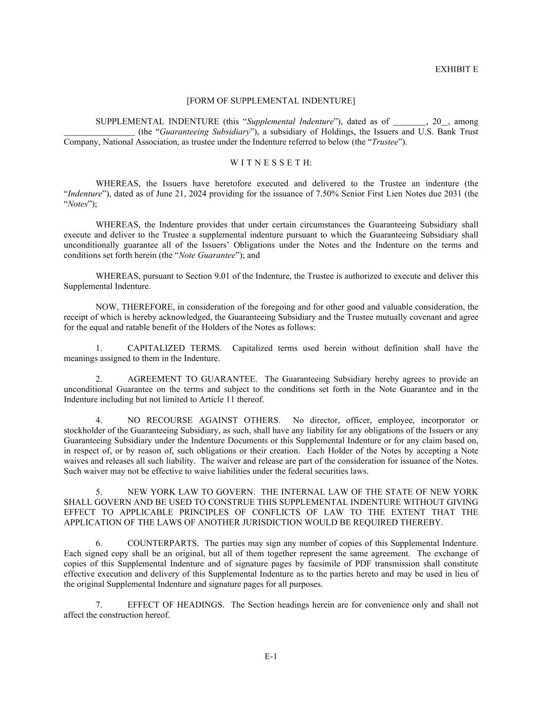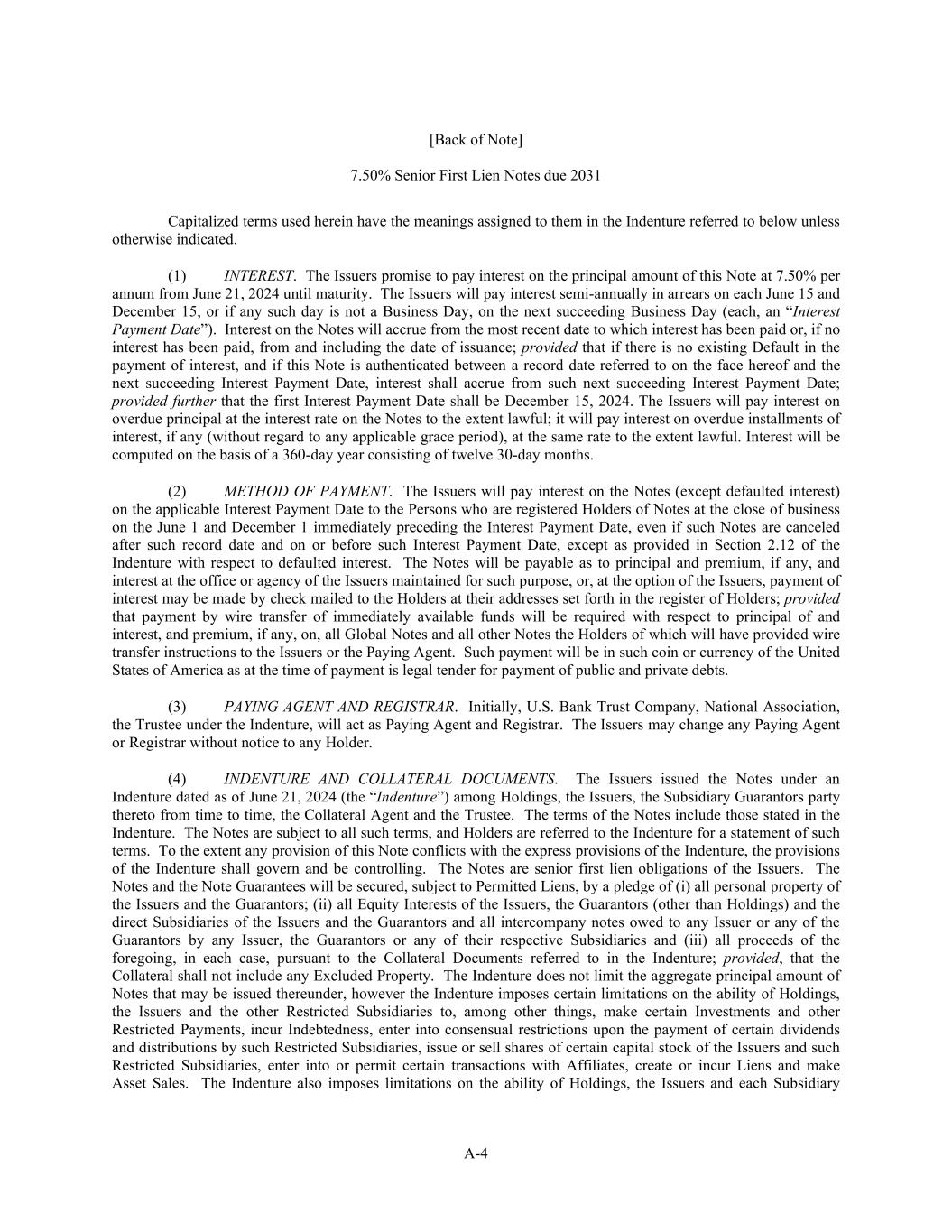 58 “Secured Notes” means the $500,000,000 in aggregate principal amount of 7.50% Senior Secured Notes due 2031 issued by the Borrower and Valor Co-Issuer, Inc. pursuant to the Secured Notes Indenture. “Secured Notes Documents” means the Secured Notes Indenture and all other agreements, instruments and other documents (including collateral documents with respect thereto) pursuant to which the Secured Notes have been issued. “Secured Notes Indenture” means the Indenture, dated as of June 21, 2024, among Holdings, the Borrower, Valor Co-Issuer, the subsidiary guarantors party thereto from time to time and the Secured Notes Trustee, governing the Secured Notes, as the same may be amended, supplemented, waived or otherwise modified from time to time. “Secured Notes Trustee” means U.S. Bank Trust Company, National Association, in its capacity as trustee and collateral agent under the Secured Notes Indenture, and any successor in such capacity. “Secured Parties” has the meaning assigned to such term in the Collateral Agreement. “Securitization Assets” shall mean any of the following assets (or interests therein) from time to time originated, acquired or otherwise owned by the Borrower or any Subsidiary or in which the Borrower or any Subsidiary has any rights or interests, in each case, without regard to where such assets or interests are located: (a) Receivables Assets, (b) revenues related to distribution and licensing of the products of the Borrower or any Subsidiary, (c) Intellectual Property rights relating to the generation of any of the types of assets listed in this definition, (d) any Equity Interests of any Special Purpose Securitization Subsidiary or any Subsidiary of a Special Purpose Securitization Subsidiary and any rights under any limited liability company agreement, trust agreement, shareholders agreement, organization or formation documents or other agreement entered into in furtherance of the organization of such entity and (e) other assets and property (or proceeds of such assets or property) to the extent customarily included in securitization transactions of the relevant type in the applicable jurisdictions (as determined by the Borrower in good faith). “Security Documents” means the Collateral Agreement, the Mortgages and each other security agreement or pledge agreement executed and delivered pursuant to the Collateral and Guarantee Requirement, Section 5.11 or 5.12 to secure any of the Secured Obligations. “Senior Representative” means, (i) with respect to the Secured Notes, U.S. Bank Trust Company, National Association, as the Secured Notes Trustee, and (ii) with respect to any series of Permitted First Priority Refinancing Debt, Permitted Junior Lien Refinancing Debt, Indebtedness permitted to be secured (to the extent secured by Collateral) pursuant to Section 6.01(a)(viii) or Section 6.01(a)(ix) or Incremental Equivalent Debt incurred under Section 6.01(a)(xxii), the trustee, administrative agent, collateral agent, security agent or similar agent under the indenture or agreement pursuant to which such Indebtedness is issued, incurred or otherwise obtained, as the case may be, and, in each case under clauses (i) and (ii), each of their successors in such capacities. “Similar Business” means any business, the majority of whose revenues are derived from (i) business or activities conducted by the Borrower and its Subsidiaries on the ClosingFirst Amendment Effective Date, (ii) any business that is a natural outgrowth or reasonable extension, development or expansion of any such business or any business similar, reasonably related, incidental, complementary or ancillary to any of the foregoing or (iii) any business that in the Borrower’s good faith business judgment constitutes a reasonable diversification of businesses conducted by the Borrower and its Subsidiaries.