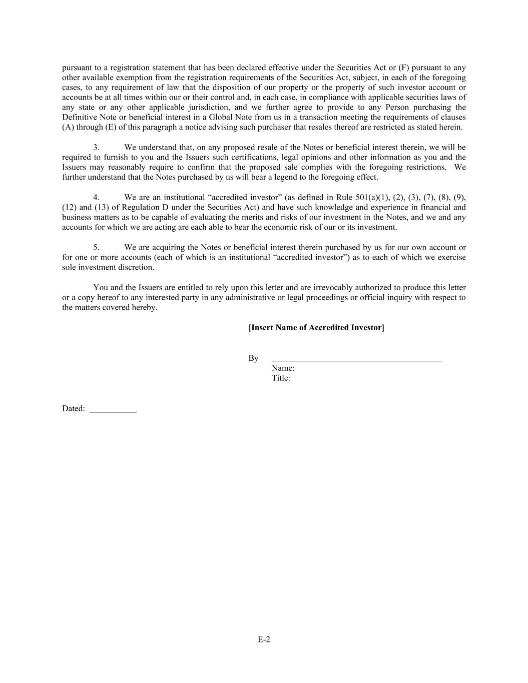 89 Requirements of Law or upon the reasonable request of Borrower or the Administrative Agent) whichever of the following is applicable: (A) two duly completed copies of Internal Revenue Service Form W-8BEN or W-8BEN-E (or any successor forms) claiming eligibility for benefits of an income tax treaty to which the United States of America is a party, (B) two duly completed copies of Internal Revenue Service Form W-8ECI (or any successor forms), (C) in the case of a Lender claiming the benefits of the exemption for portfolio interest under Section 881(c) of the Code, (x) a certificate, in substantially the form of Exhibit P (any such certificate a “United States Tax Compliance Certificate”), or any other form approved by the Administrative Agent, to the effect that such Lender is not (1) a “bank” within the meaning of Section 881(c)(3)(A) of the Code, (2) a “10 percent shareholder” of a Borrower within the meaning of Section 881(c)(3)(B) of the Code, or (3) a “controlled foreign corporation” described in Section 881(c)(3)(C) of the Code, and that no payments in connection with the Loan Documents are effectively connected with such Lender’s conduct of a U.S. trade or business and (y) two duly completed copies of Internal Revenue Service Form W-8BEN or W-8BEN-E (or any successor forms), (D) to the extent a Lender is not the beneficial owner (for example, where the Lender is a partnership, or is a Participant holding a participation granted by a participating Lender), Internal Revenue Service Form W-8IMY (or any successor forms) of the Lender, accompanied by a Form W-8ECI, W-8BEN or W-8BEN-E, United States Tax Compliance Certificate, Form W-9, Form W-8IMY (or other successor forms) or any other required information from each beneficial owner, as applicable (provided that, if the Lender is a partnership (and not a participating Lender) and one or more beneficial owners are claiming the portfolio interest exemption, the United States Tax Compliance Certificate shall be provided by such Lender on behalf of such beneficial owner(s)), or (E) any other form prescribed by applicable Requirements of Law as a basis for claiming exemption from or a reduction in U.S. federal withholding tax duly completed together with such supplementary documentation as may be prescribed by applicable Requirements of Law to permit Borrower and the Administrative Agent to determine the withholding or deduction required to be made. Each Lender shall, from time to time after the initial delivery by such Lender of the forms described above, whenever a lapse in time or change in such Lender’s circumstances renders such forms, certificates or other evidence so delivered expired, obsolete or inaccurate, promptly (1) deliver to the Borrower and the Administrative Agent (in such number of copies as shall be requested by the recipient) renewals, amendments or additional or successor forms, properly completed and duly executed by such Lender, together with any other certificate or statement of exemption (including any new documentation reasonably requested by the applicable withholding agent) required in order to confirm or establish such Lender’s status or that such Lender is entitled to an exemption from or reduction in U.S. federal withholding tax or (2) notify Administrative Agent and Borrower of its inability to deliver any such forms, certificates or other evidence. Notwithstanding any other provision of this clause (e), a Lender shall not be required to deliver any form that such Lender is not legally eligible to deliver.
