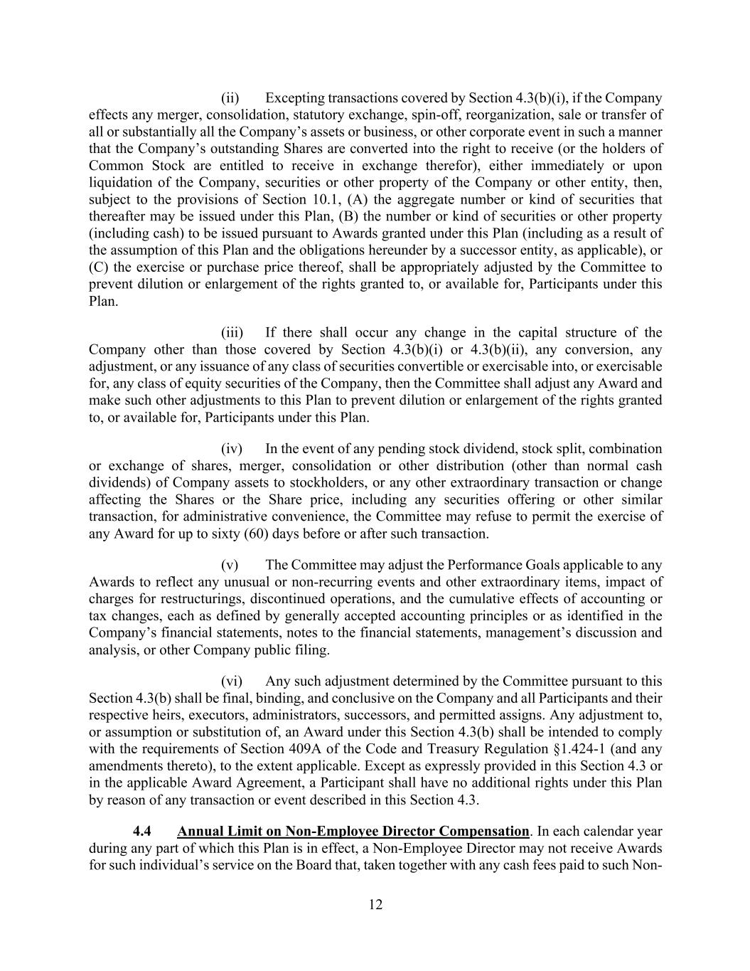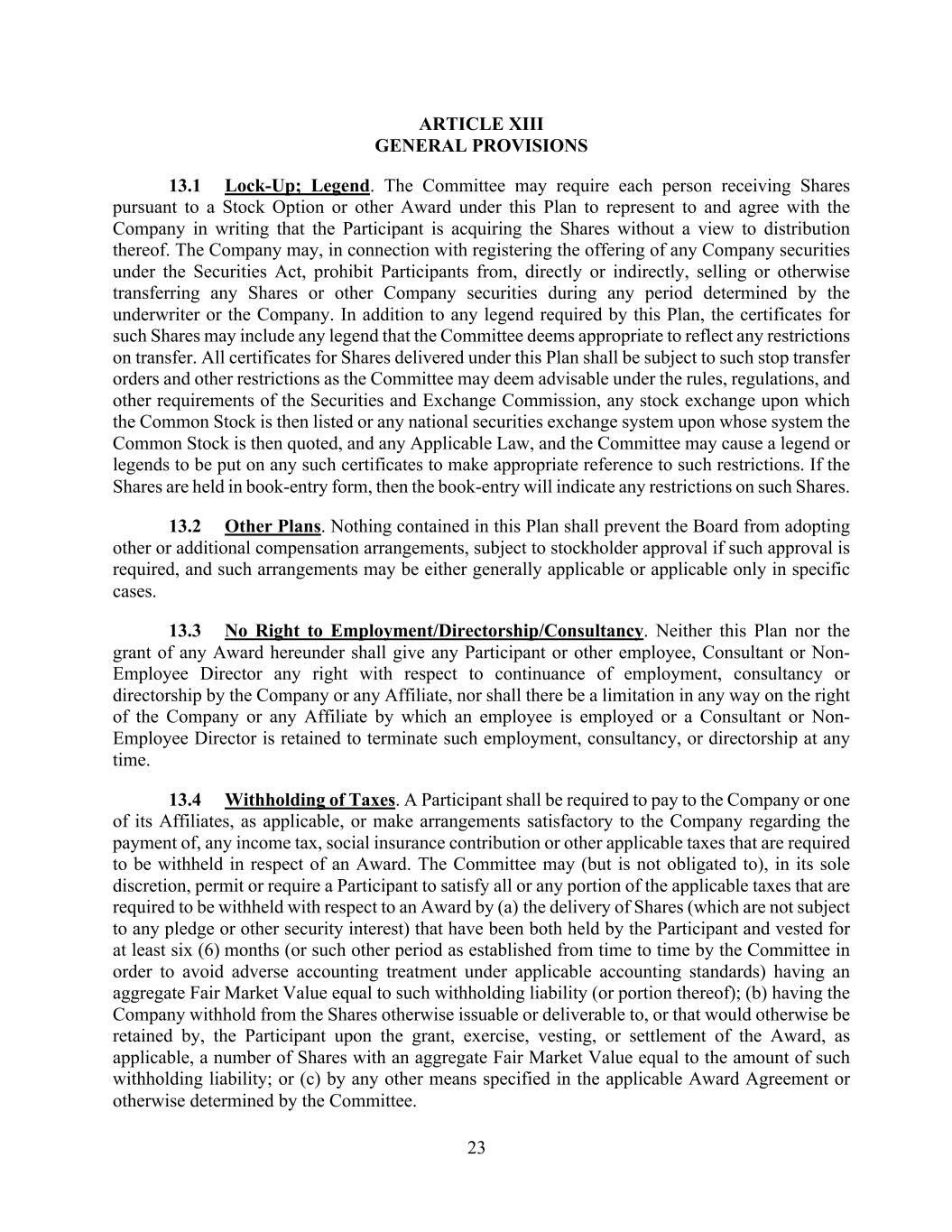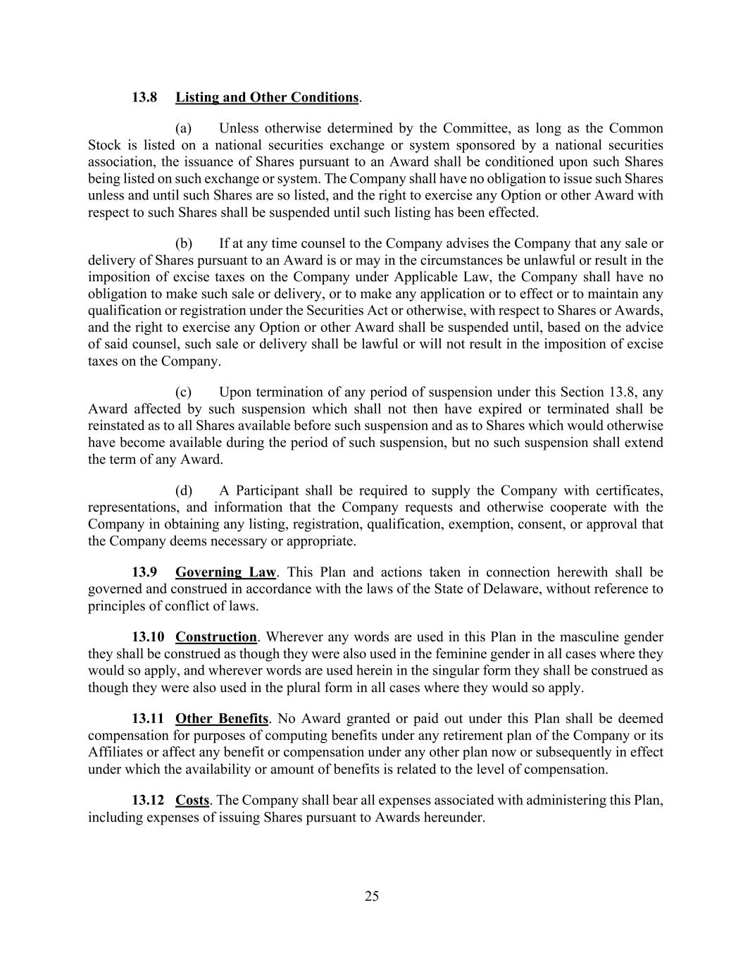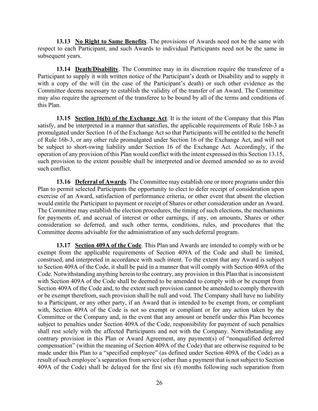 In addition, the Registrant has entered into indemnification agreements with each of its directors and executive officers. These agreements require the Registrant to indemnify these individuals to the fullest extent permitted under Delaware law against liabilities that may arise by reason of their service to the Registrant, and to advance expenses incurred as a result of any proceeding against them as to which they could be indemnified.