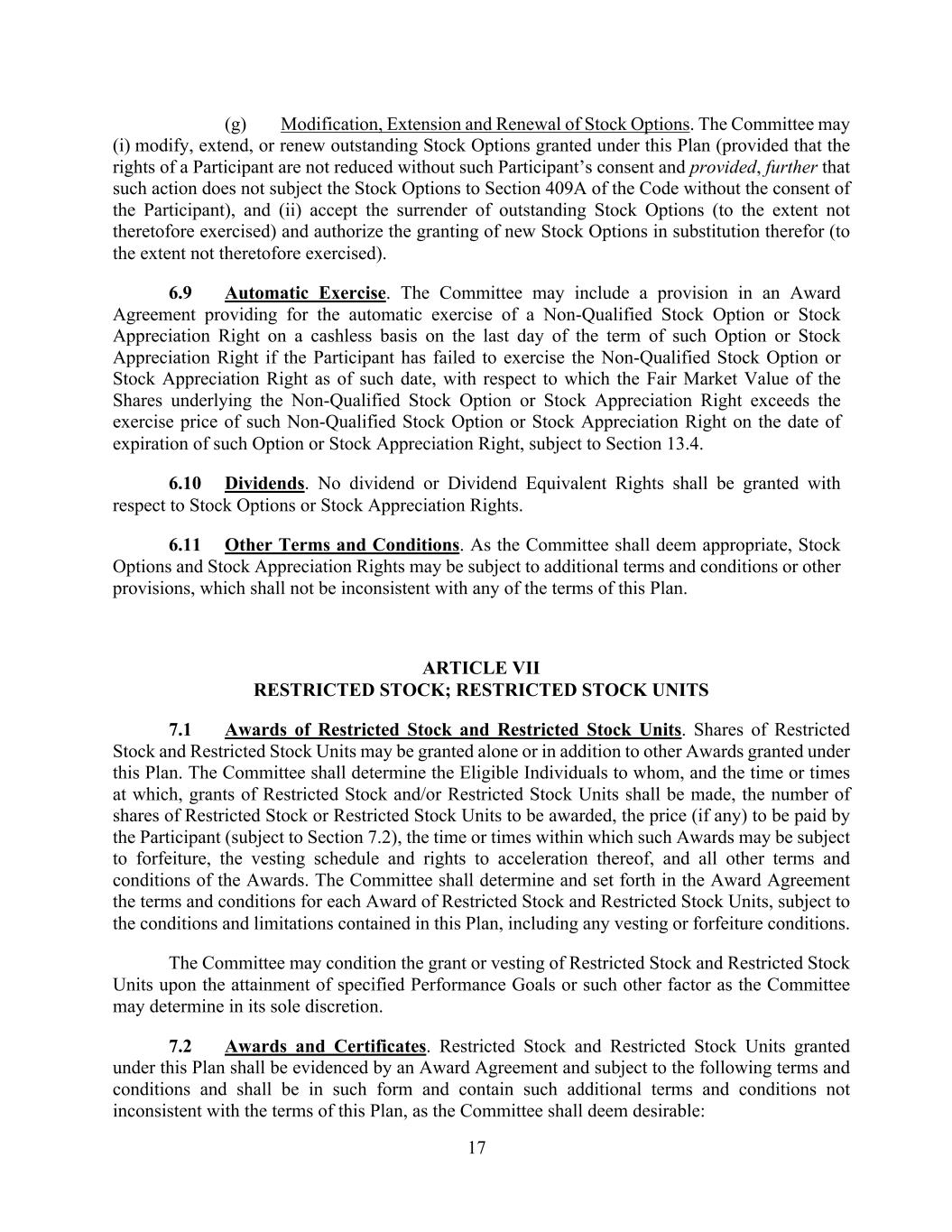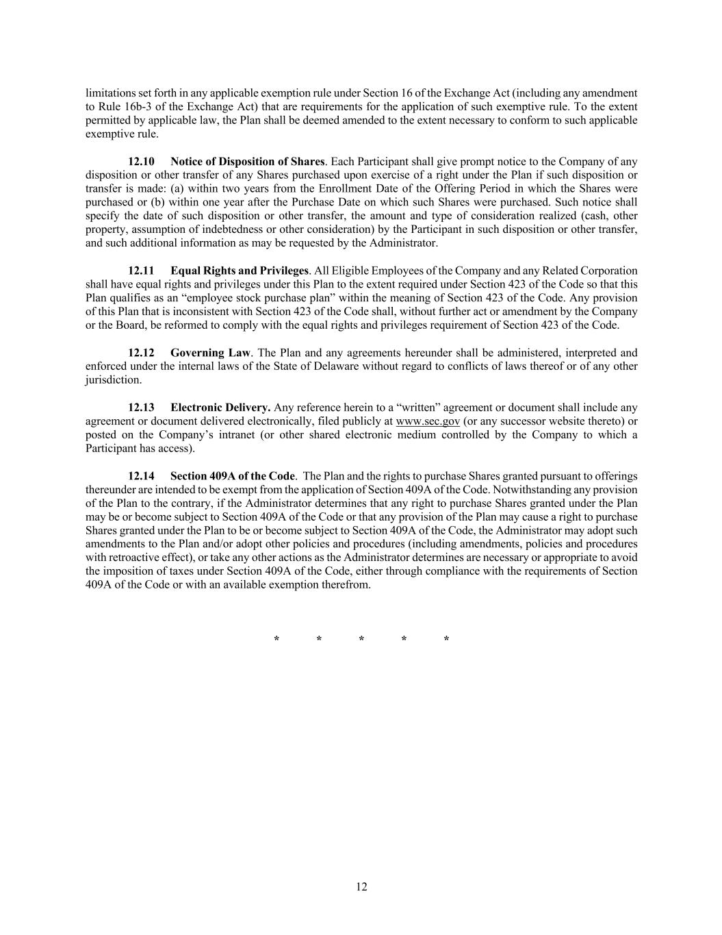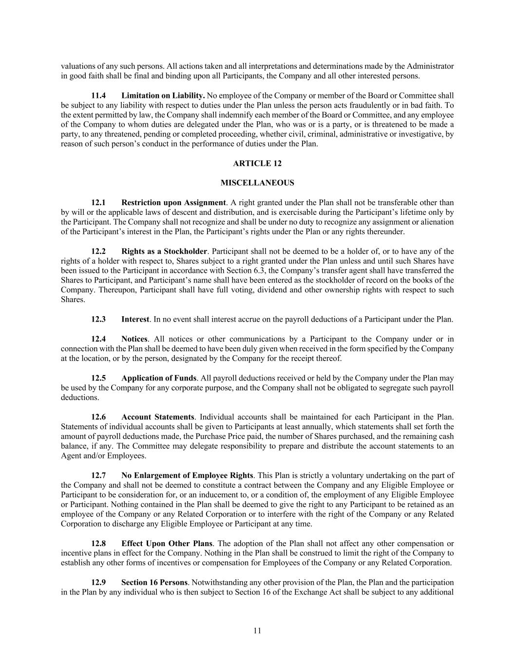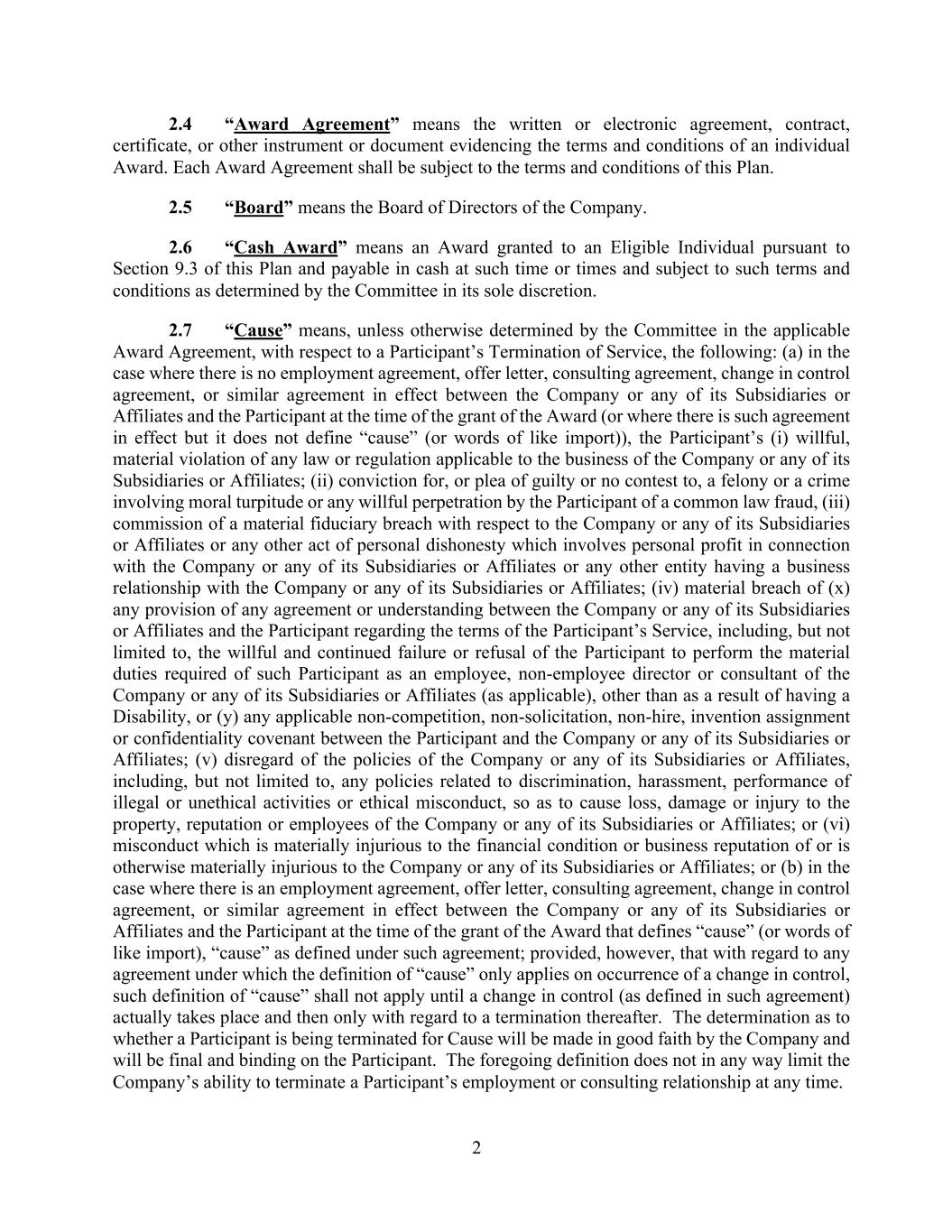 In addition, the Registrant has entered into indemnification agreements with each of its directors and executive officers. These agreements require the Registrant to indemnify these individuals to the fullest extent permitted under Delaware law against liabilities that may arise by reason of their service to the Registrant, and to advance expenses incurred as a result of any proceeding against them as to which they could be indemnified.