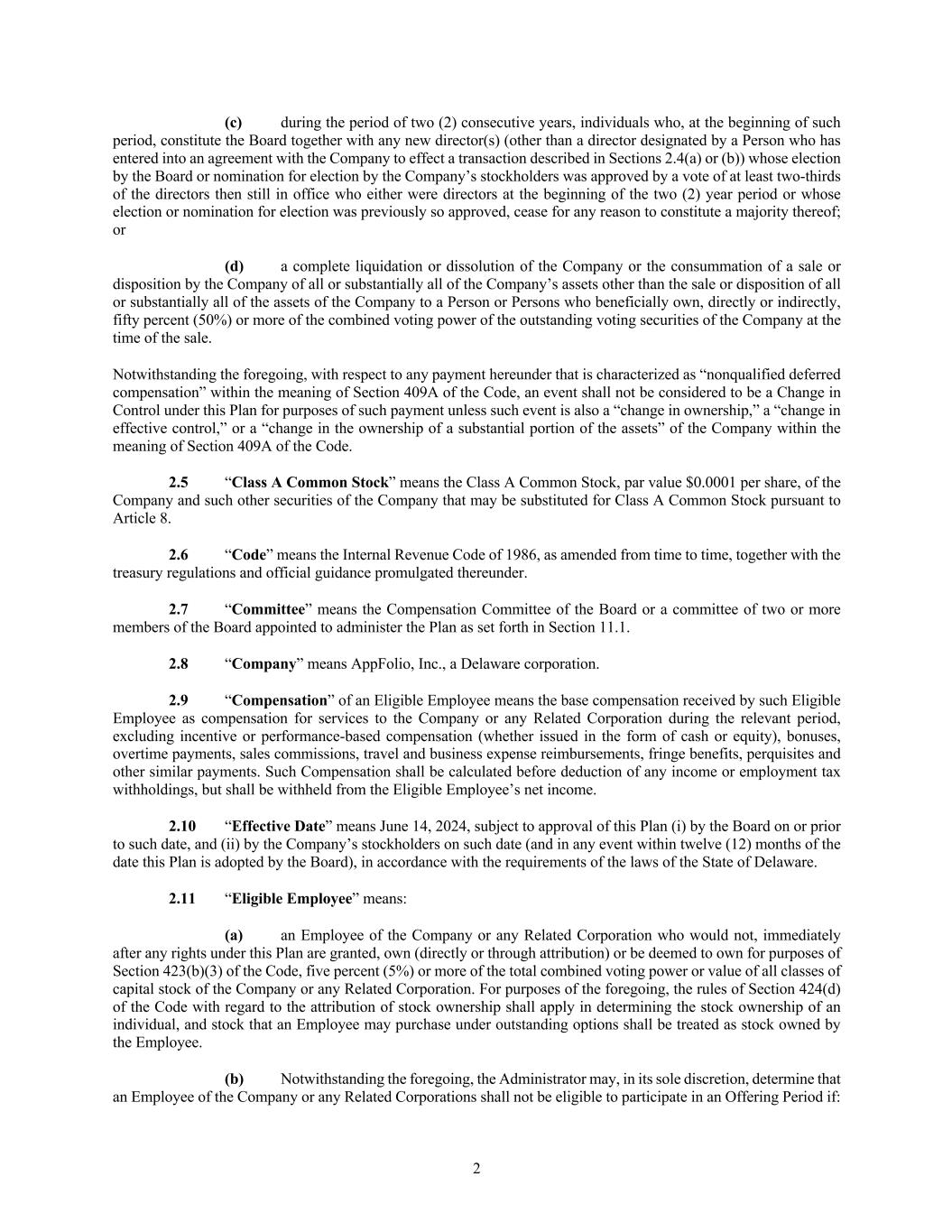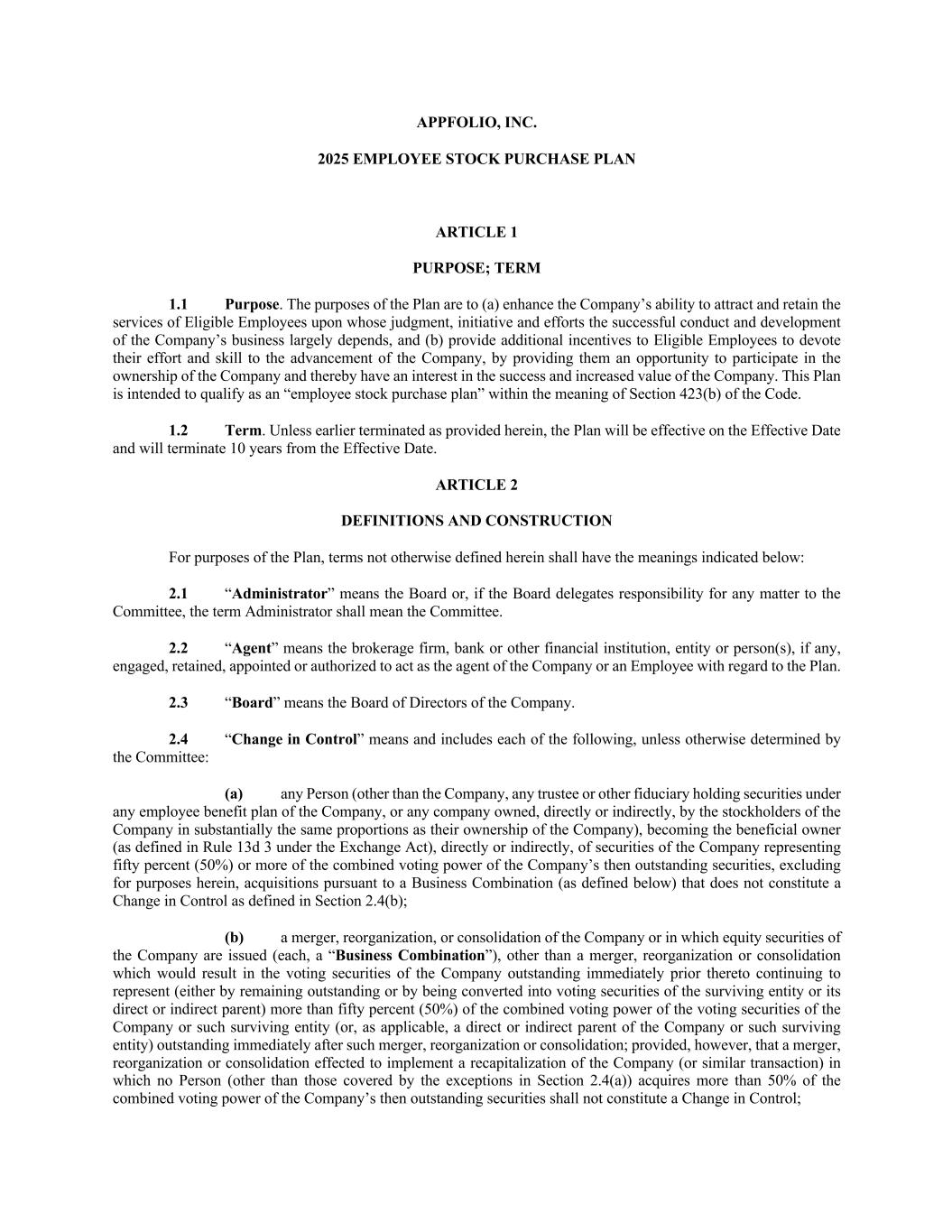 AppFolio, Inc. 2025 Employee Stock Purchase Plan