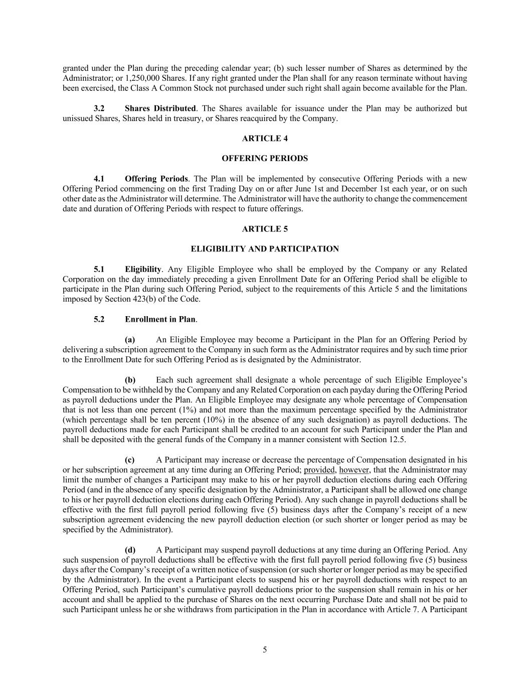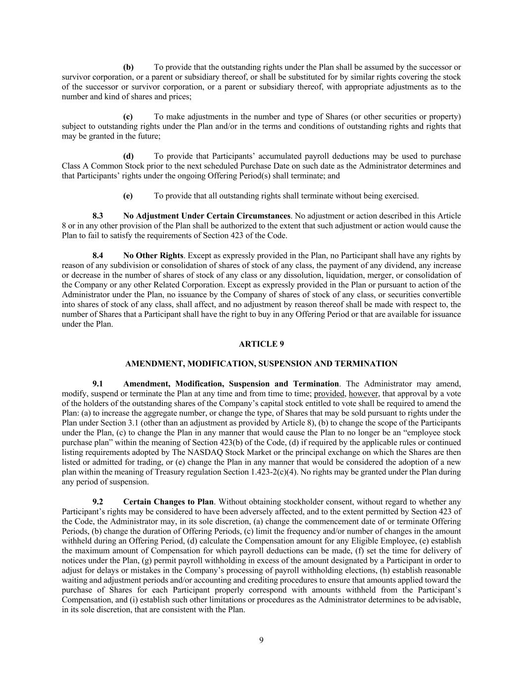 • the description of the Registrant’s Class A Common Stock contained in the Registration Statement on Form 8-A (File No. 001-37468) filed by the Registrant with the Commission on June 23, 2015, pursuant to Section 12(b) of the Securities Exchange Act of 1934, as amended (the “Exchange Act”), and any amendment or report filed for the purpose of updating such description.