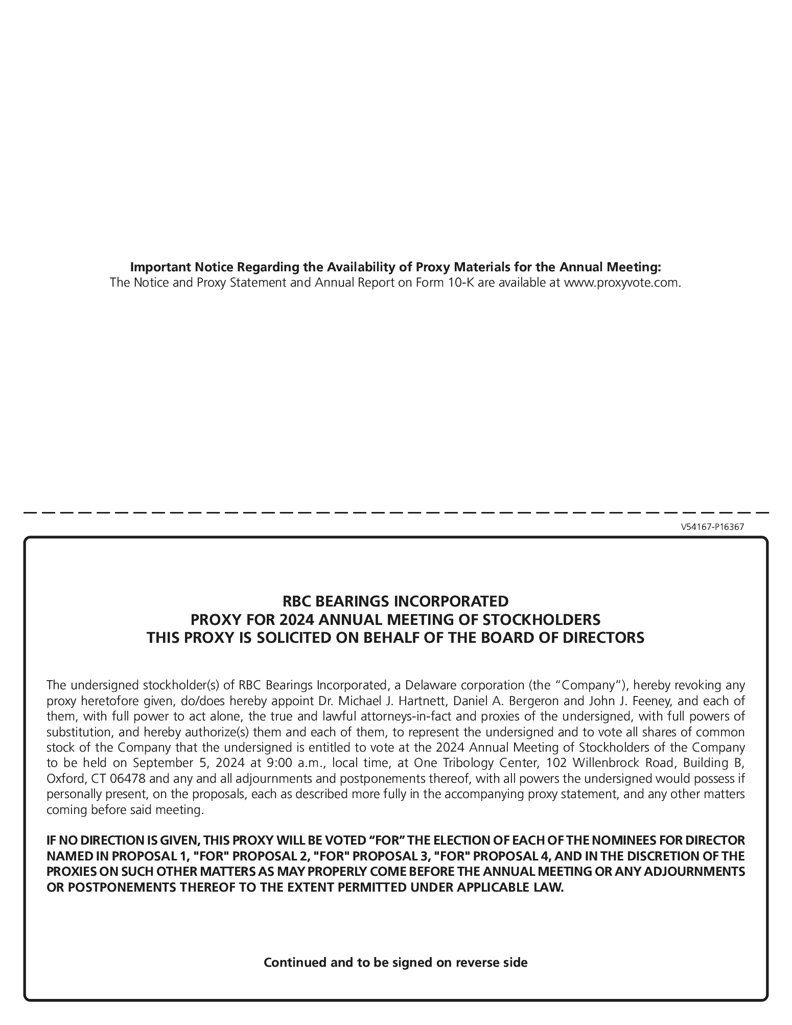 • | sending a written communication marked “Private & Confidential” to the Audit Committee, RBC Bearings Incorporated, c/o the Secretary, 102 Willenbrock Road, Oxford, CT 06478. |