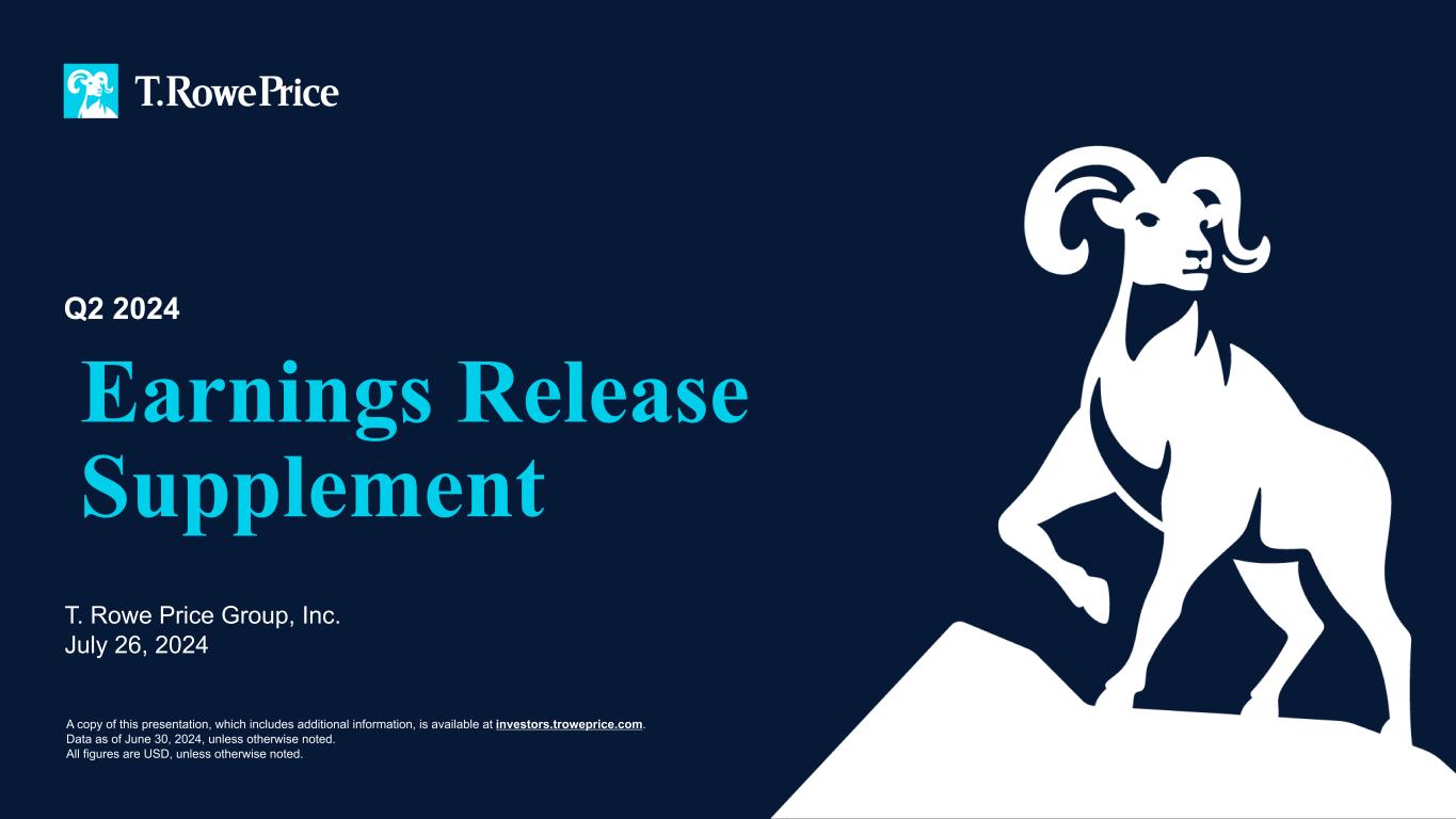 T. Rowe Price Group, Inc. July 26, 2024 Earnings Release Supplement Q2 2024 A copy of this presentation, which includes additional information, is available at investors.troweprice.com. Data as of June 30, 2024, unless otherwise noted. All figures are USD, unless otherwise noted.