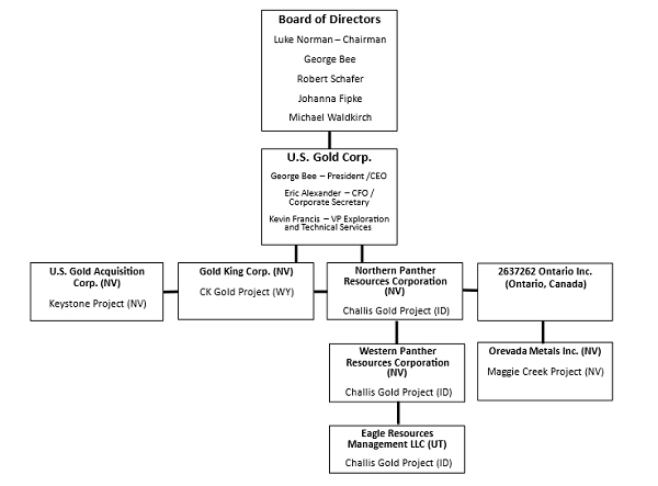 U.S. Gold Corp., formerly known as Dataram Corporation (the “Company,” “we,” “our,” or “us”), was re-incorporated under the laws of the State of Nevada in 2016 and was originally incorporated in the State of New Jersey in 1967. Effective June 26, 2017, the Company changed its legal name to U.S. Gold Corp. from Dataram Corporation. On May 23, 2017, the Company merged with Gold King Corp. (“Gold King”), in a transaction treated as a reverse acquisition and recapitalization, and the business of Gold King became the business of the Company. We are a gold, copper and precious metals development and exploration company pursuing exploration opportunities primarily in Wyoming, Nevada and Idaho.