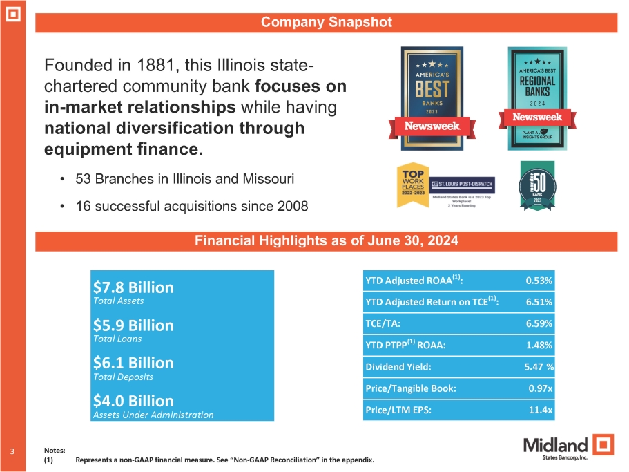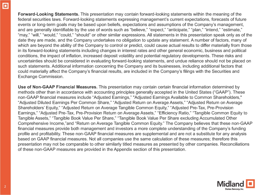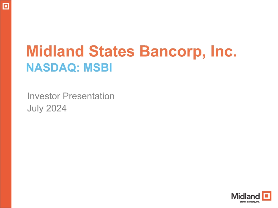 1 Midland States Bancorp, Inc. NASDAQ: MSBI Investor Presentation July 2024
