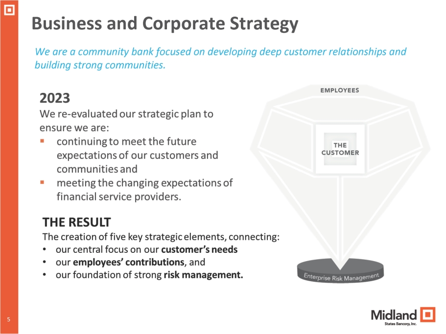 5 Business and Corporate Strategy We are a community bank focused on developing deep customer relationships and building strong communities. 5
