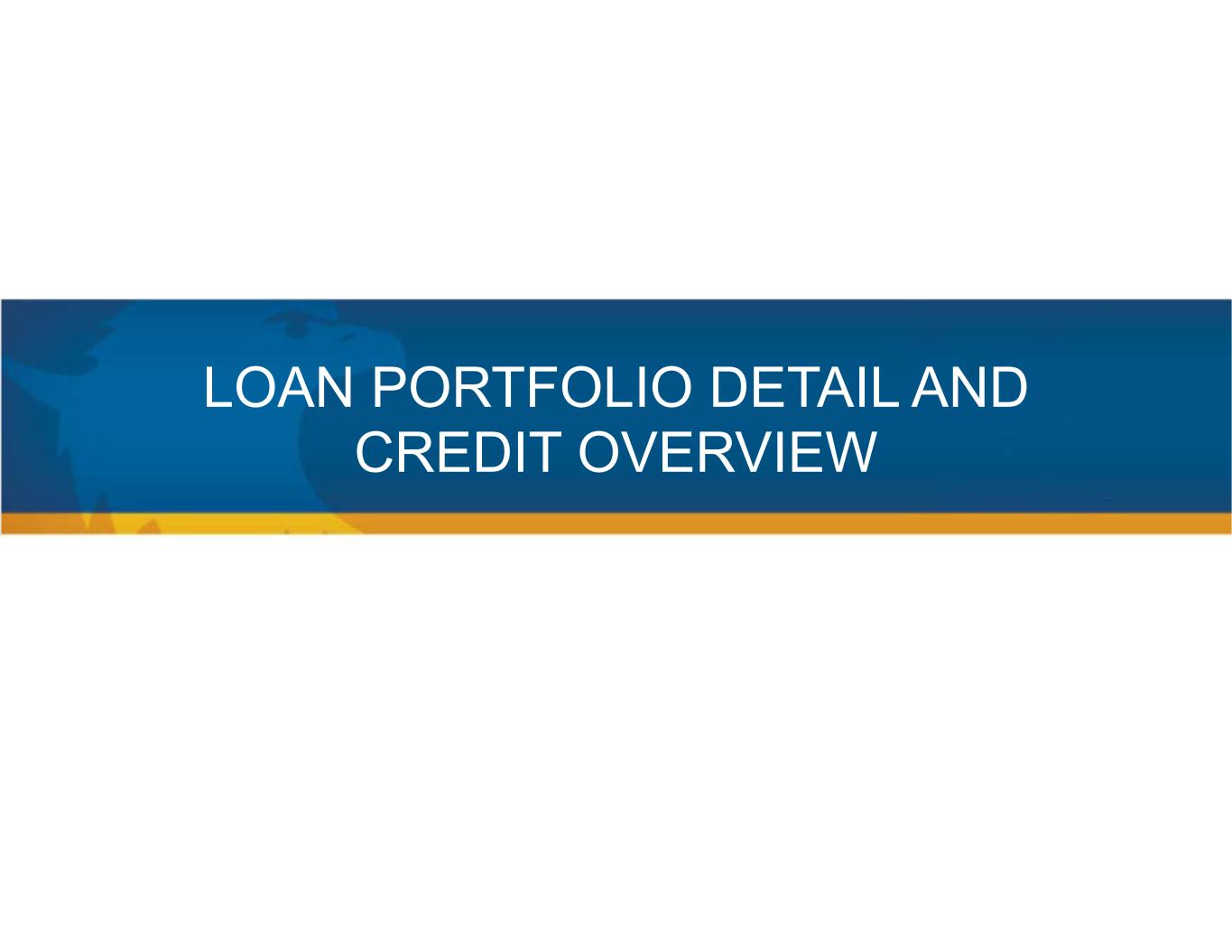 LOAN PORTFOLIO DETAIL AND CREDIT OVERVIEW