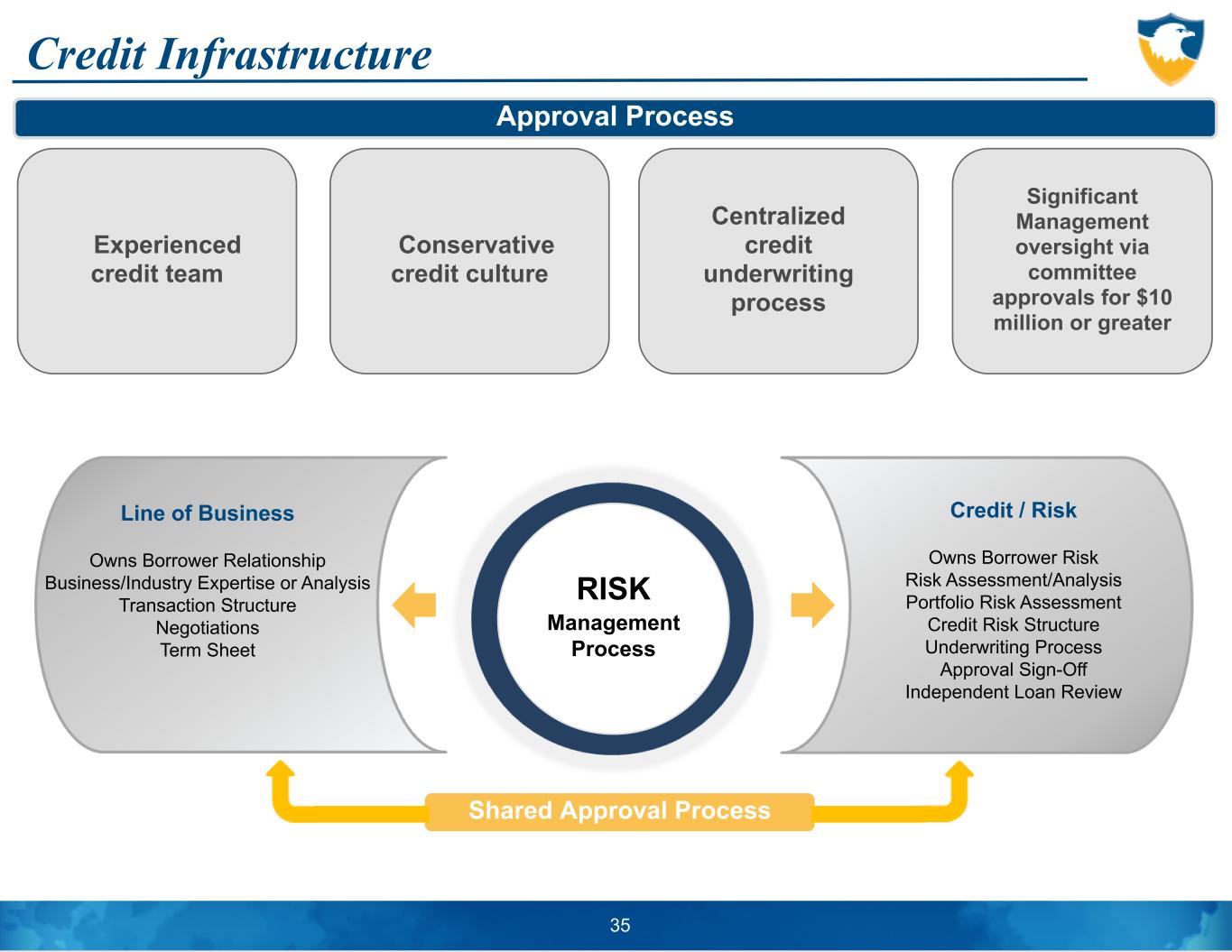 Credit Infrastructure 35 Approval Process Credit / Risk Owns Borrower Risk Risk Assessment/Analysis Portfolio Risk Assessment Credit Risk Structure Underwriting Process Approval Sign-Off Independent Loan Review Line of Business Owns Borrower Relationship Business/Industry Expertise or Analysis Transaction Structure Negotiations Term Sheet Shared Approval Process RISK Management Process Experienced credit team Conservative credit culture Centralized credit underwriting process Significant Management oversight via committee approvals for $10 million or greater