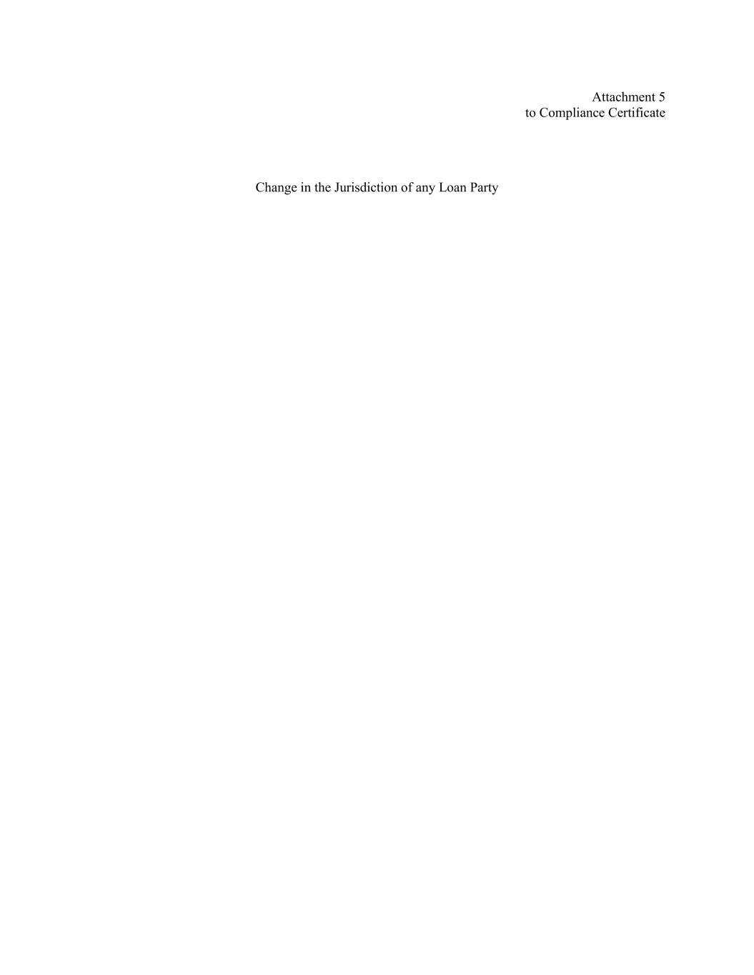 Attachment 5 to Compliance Certificate Change in the Jurisdiction of any Loan Party