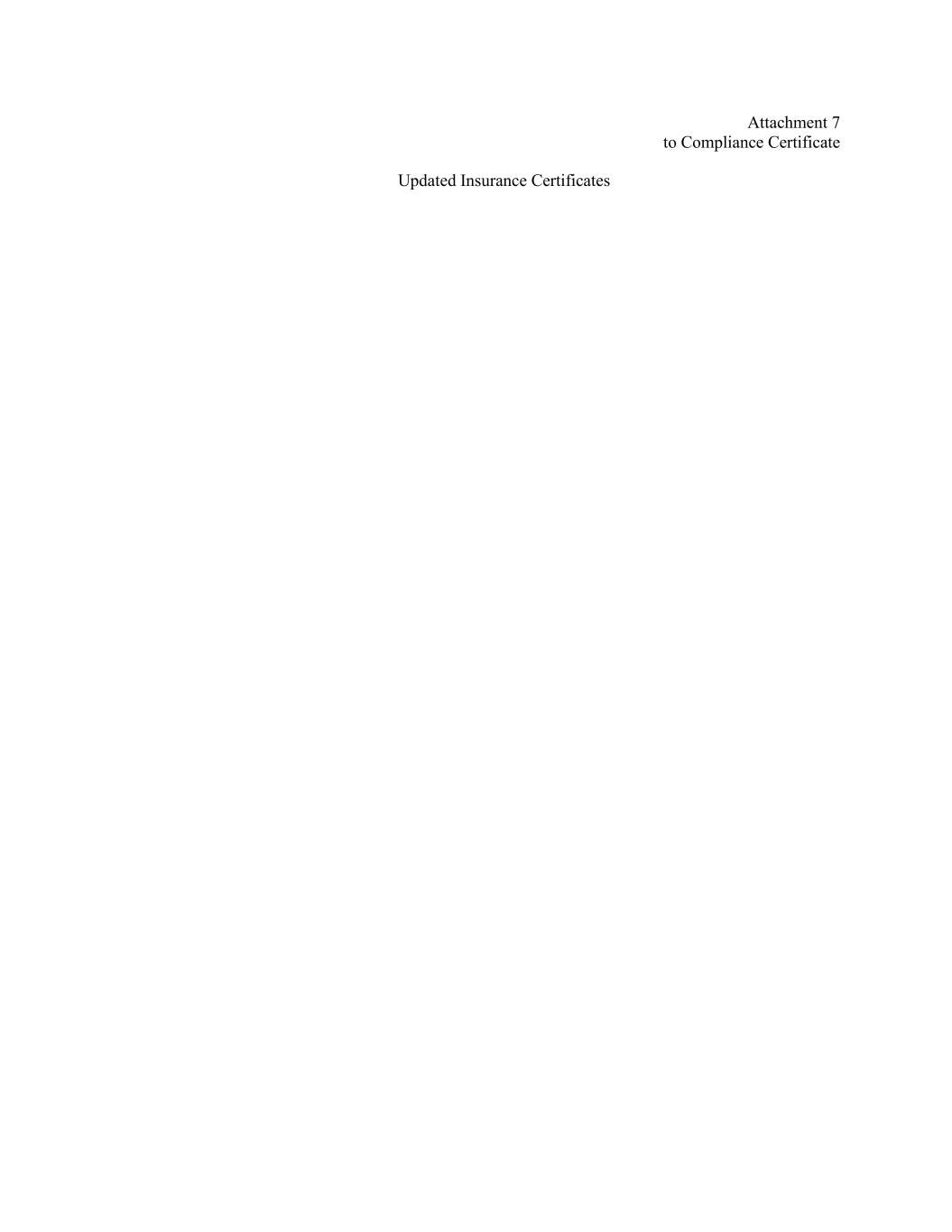 Attachment 7 to Compliance Certificate Updated Insurance Certificates