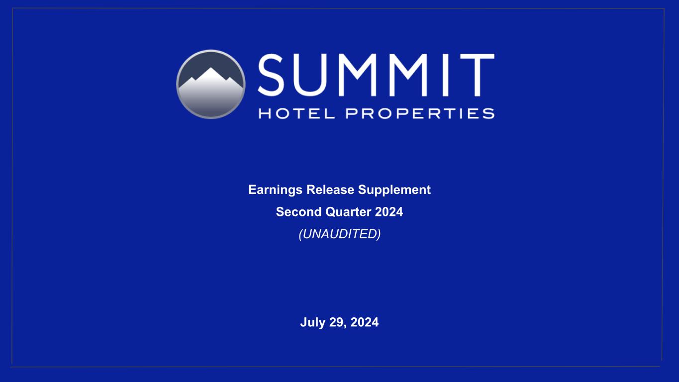 Austin, Texas, July 29, 2024 - - - Summit Hotel Properties, Inc. (NYSE: INN) (the “Company”), today announced results for the three and six months ended June 30, 2024.