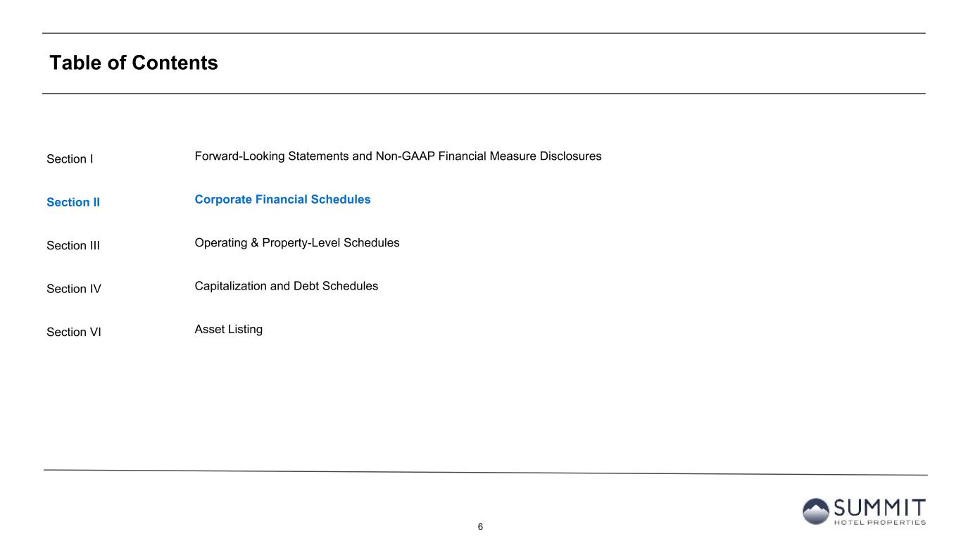 6 Table of Contents Section I Section II Section III Section IV Section VI Forward-Looking Statements and Non-GAAP Financial Measure Disclosures Corporate Financial Schedules Operating & Property-Level Schedules Capitalization and Debt Schedules Asset Listing
