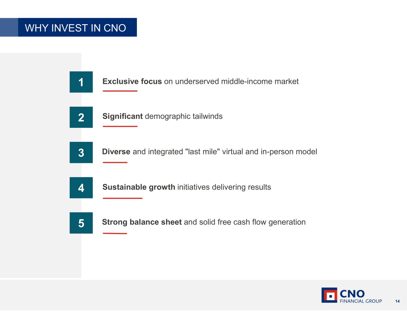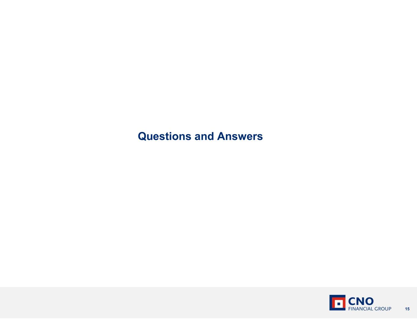 14 4 5 3 2 1 Exclusive focus on underserved middle-income market Significant demographic tailwinds Diverse and integrated "last mile" virtual and in-person model Sustainable growth initiatives delivering results Strong balance sheet and solid free cash flow generation WHY INVEST IN CNO