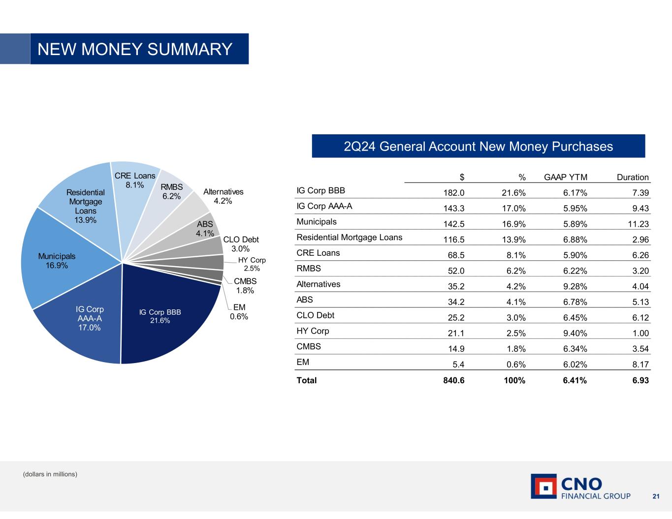(14)The new money rate is for the investments purchased during the period to support our insurance products and capital. It excludes the new money rate on investments purchased with investment borrowings under our Federal Home Loan Bank and FABN programs and investments purchased by the variable interest entities.