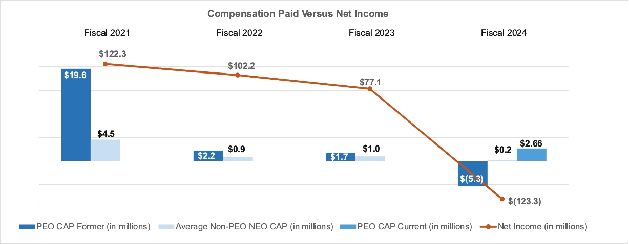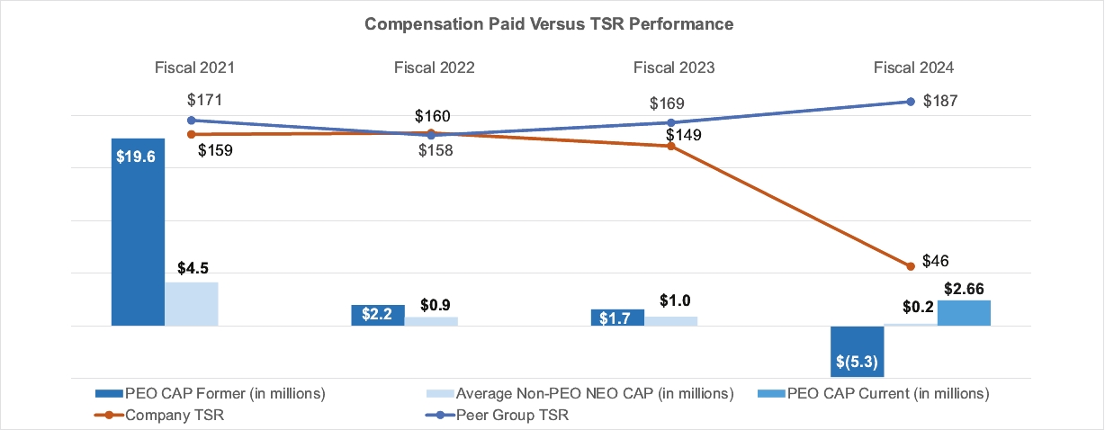 (3) | These amounts reflect the average total compensation reported for the Company’s named executive officers as a group (excluding Mr. Avula and Mr. Duda) in the “Total” column of the Summary Compensation Table for each corresponding year. The Non-PEO named executive officers are comprised of the following: fiscal 2024 – Mr. Tsoumas, Ms. Barry, Mr. Martin and Mr. Shetty; fiscal 2023 - Mr. Tsoumas, Mr. Khoury, Ms. Barry and Ms. Vyverberg; and fiscal 2022 and 2021 - Mr. Tsoumas, Mr. Khoury, Ms. Barry and Mr. Martin. |