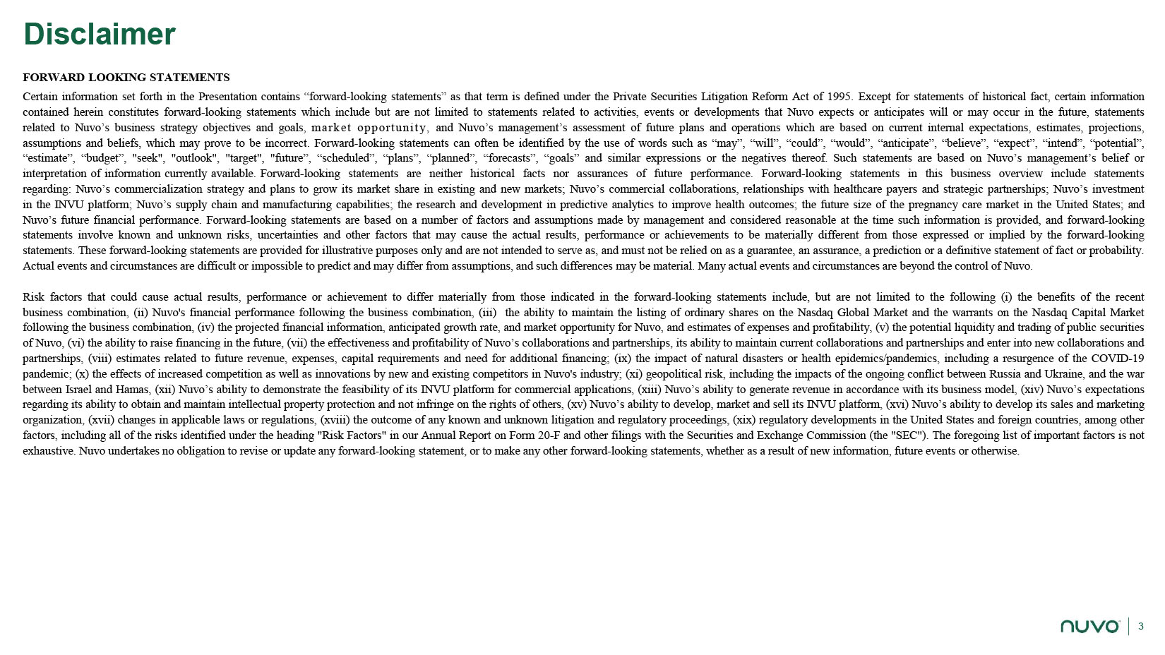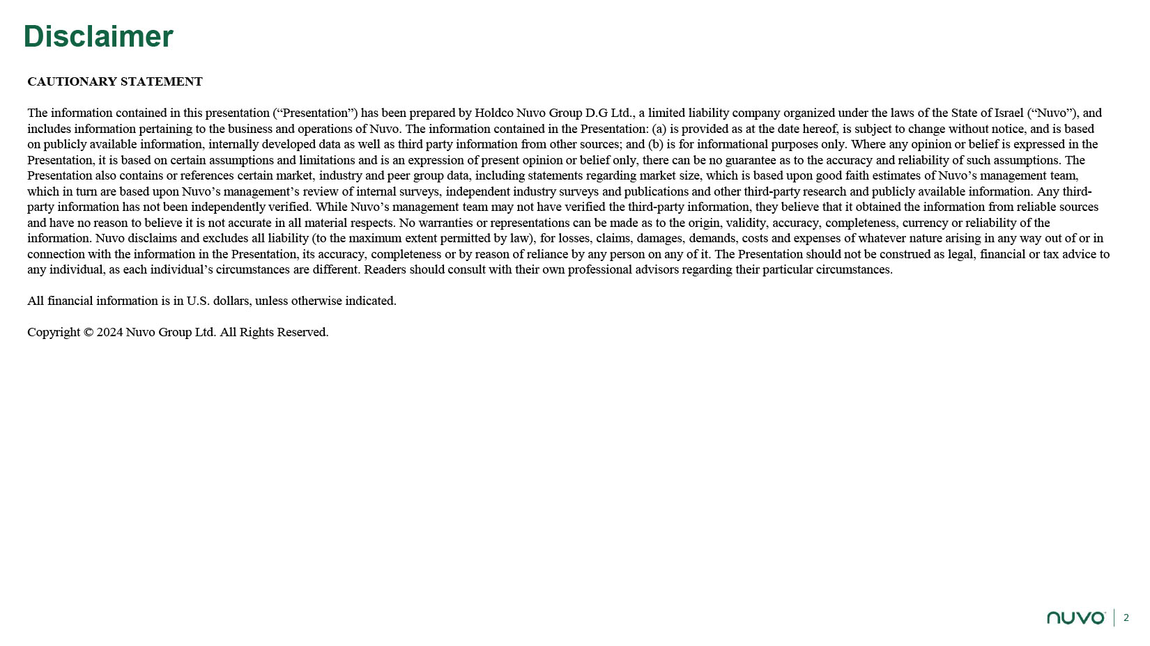 On July 29, 2024, Holdco Nuvo Group D.G Ltd., a limited liability company organized under the laws of the State of Israel (the “Company”), posted an updated investor presentation to its website.