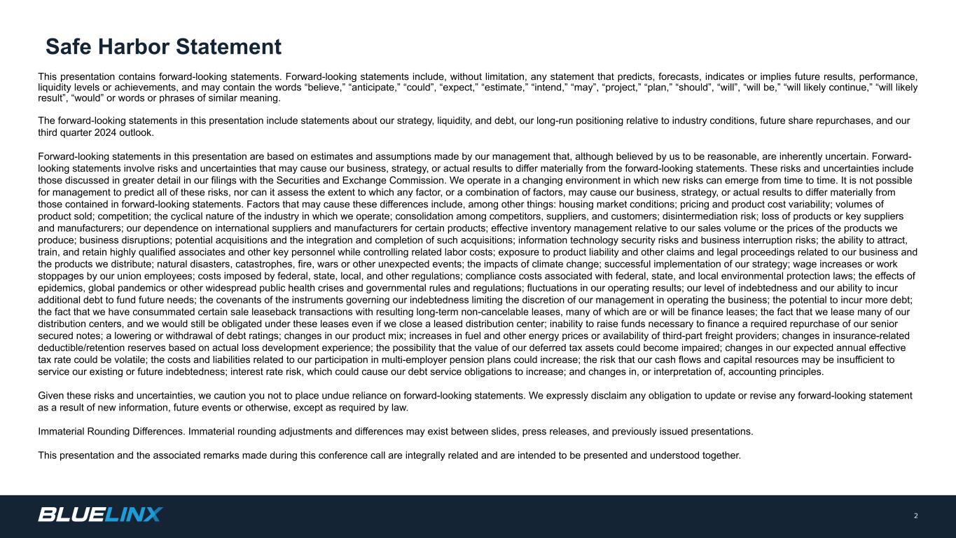 BlueLinx Q2 2024 Results Delivering What Matters July 31, 2024 © BlueLinx 2024. All Rights Reserved. 1 EXHIBIT 99.2