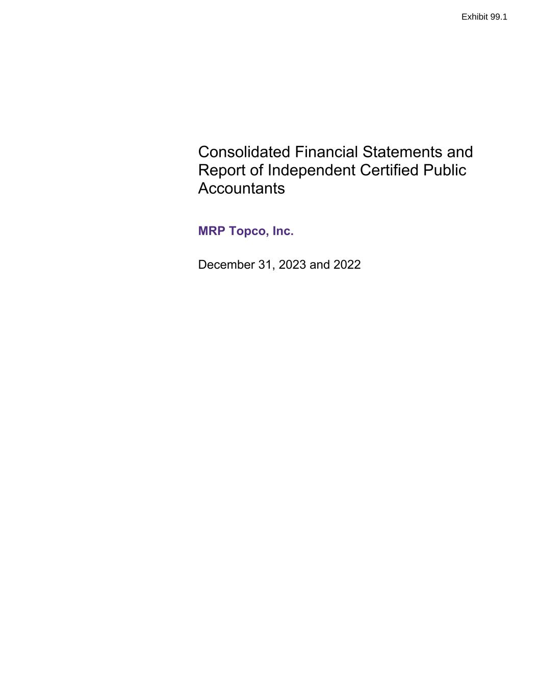 | The audited consolidated financial statements of MRP Topco, Inc. as of and for the years ended December 31, 2023 and December 31, 2022 and the related notes. |