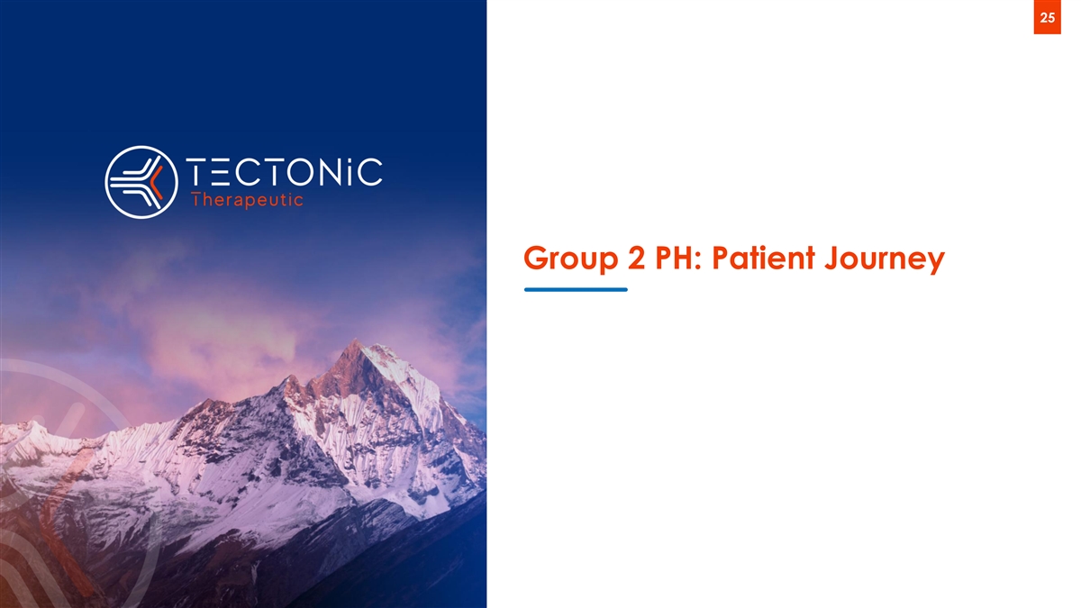 24 TX45 Our Focus is on the Group 2 PH Subset of Heart Failure with Preserved EF (HFpEF) Clinical Program Designed to Enable Evaluation of Efficacy in Overall Population and CpCPH IpcPH (Isolated, post capillary PH) Heart Increased Left Ventricle Filling Pressures HFpEF Normal Ô HFpEF 1,2 Increased Pulmonary Venous Pressures (Several million pts.) Ô Passive Pressure Backflow Ô Pulmonary Hypertension Group 2 PH 3 (>600K) IpcPH CpcPH CpcPH (Combined, pre- and post capillary PH) (>500K) (>100K) Chronic PH and/or Other Drivers Pulmonary Vasculature Ô Permanent Vascular Changes, e.g. Pulmonary Artery Remodeling Ô Increased Vascular Resistance Ô Normal PAH-like Right Heart Failure 1. US prevalence numbers. Estimates based on data from 2. Kapelios, C. et al., Cardiac Failure Review 2023;9:e14 3. Sera F. et al. Heart 2023;109:626–633