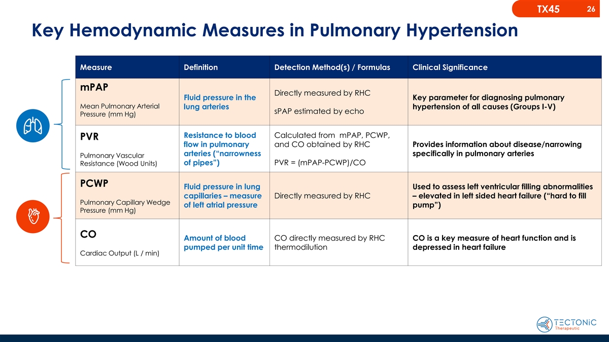 The Phase 1b clinical trial of TX45 in patients with Group 2 PH-HFpEF is a single dose, open-label trial to evaluate safety, tolerability and acute hemodynamic effects of IV administration of TX45, with study results expected in mid-2025. The trial will evaluate the change from baseline in PVR as determined by right heart catheterization, as well as improvement in mean pulmonary artery pressure (mPAP), pulmonary capillary wedge pressure (PCWP), cardiac output, and systemic vascular resistance (SVR).