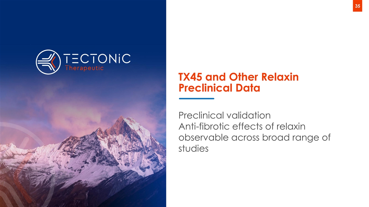 35 TX45 and Other Relaxin Preclinical Data Preclinical validation Anti-fibrotic effects of relaxin observable across broad range of studies