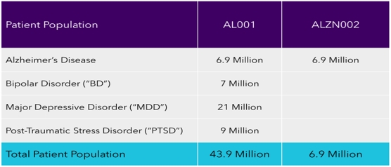| · | Serious adverse events or other safety risks could require us to abandon development and preclude, delay or limit approval of AL001 or ALZN002, or limit the scope of any approved label or market acceptance. |