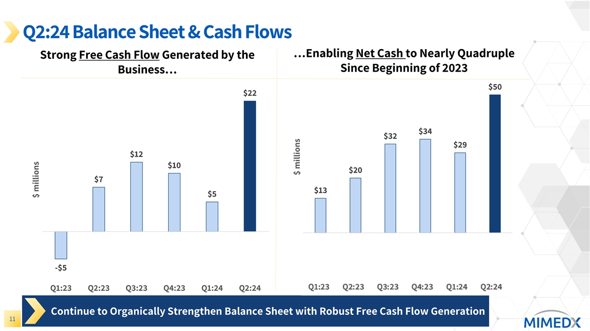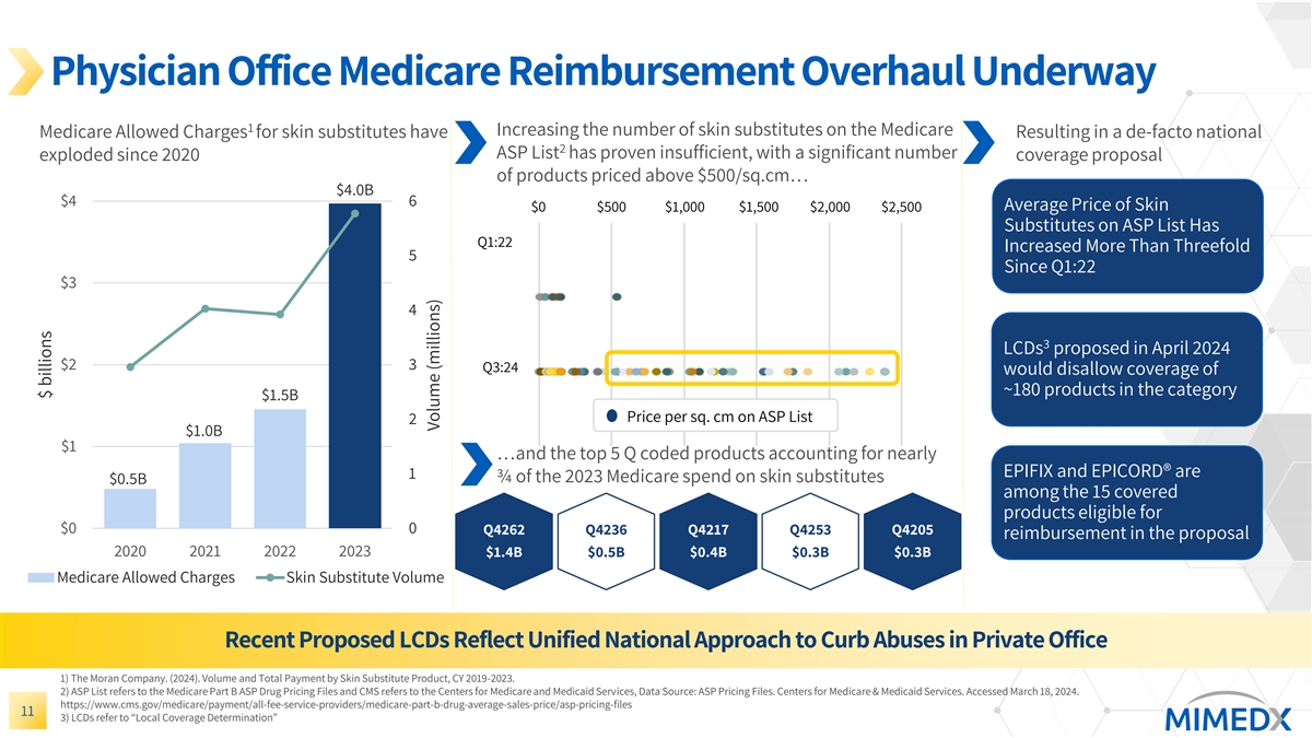 Expanding Breadth of Skin Substitutes Leading Human-Derived Portfolio Emerging Xenograft Platform Best-in-Class Wound Product Portfolio Recently announced exclusive manufacturing and supply agreement with Regenity Biosciences. HELIOGEN builds on our goal to augment our growth through strategic portfolio expansion. Provides MIMEDX with a bovine-derived collagen matrix particulate product that is 510(k)-cleared and indicated for the management of exudating wounds and to control minor bleeding. Innovative Offering for Surgical Market 10